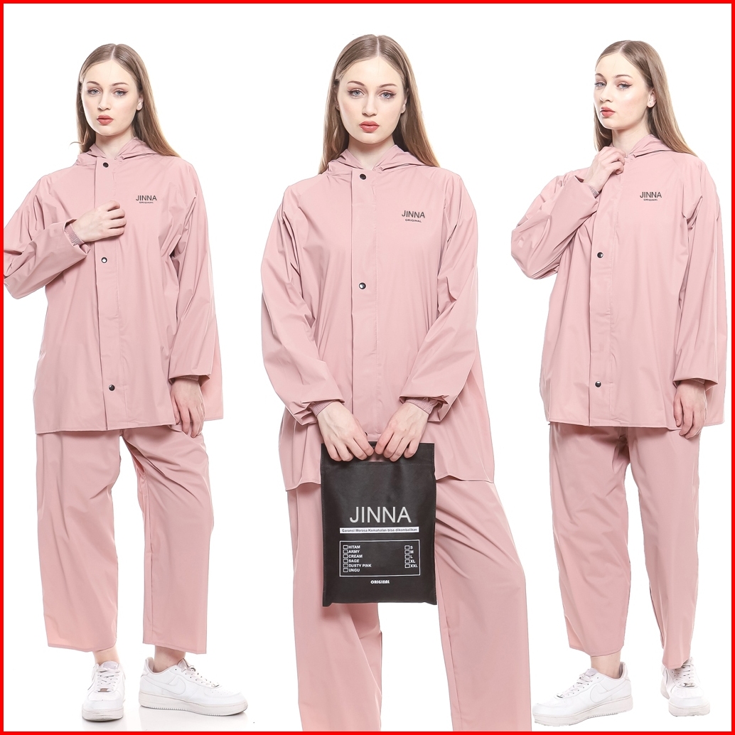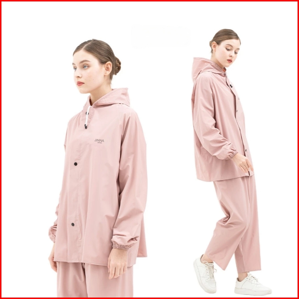Jinna - Jas Hujan Setelan Pria Wanita Bahan Pvc Tebal Anti Rembes Air Army