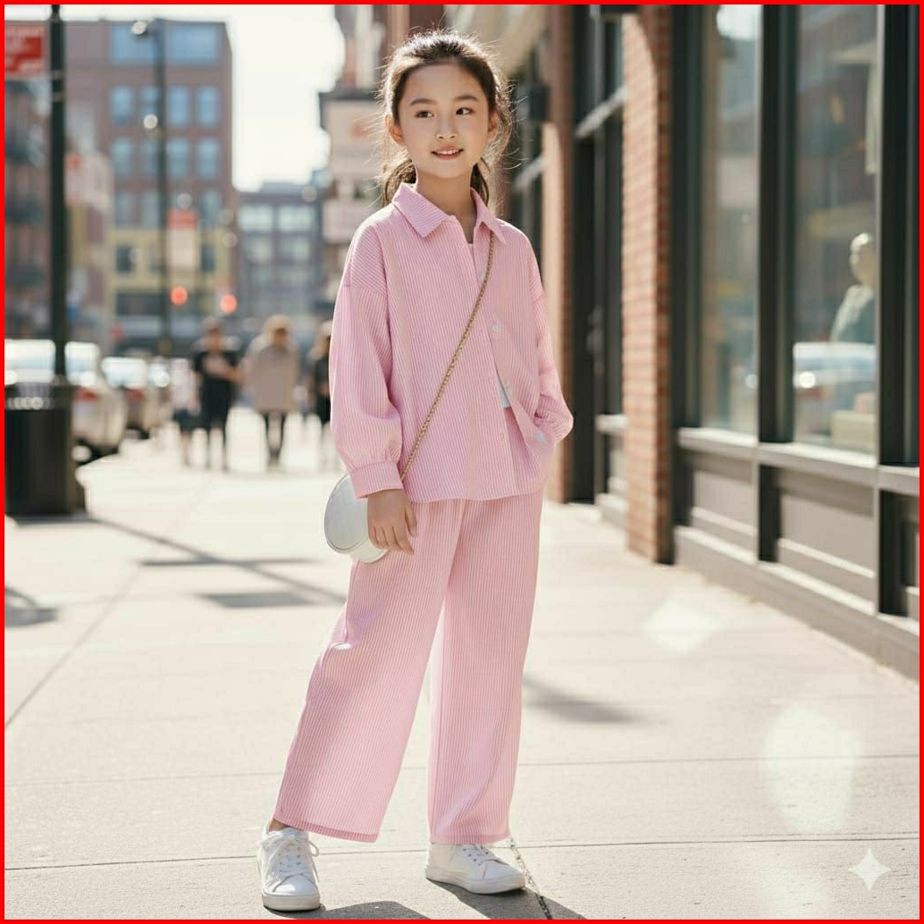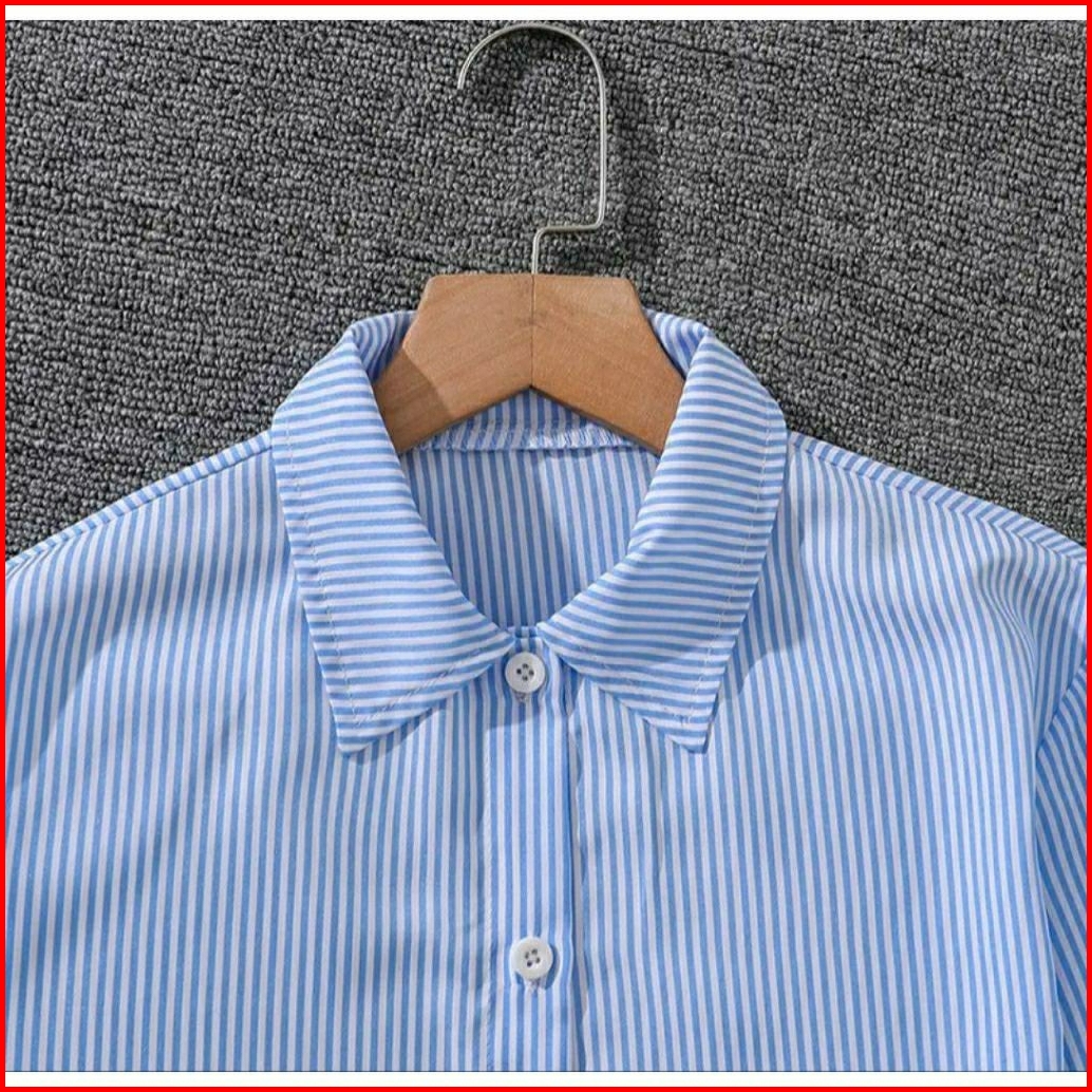 Setelan Salur Anak Perempuan 1-12 Tahun Baju Kemeja Tangan Panjang One Set Salur Premium