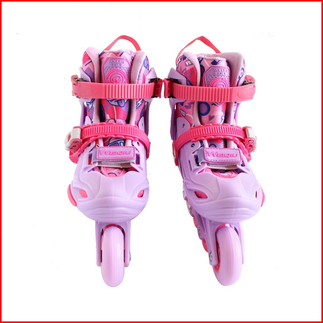 Sepatu Roda Original Weiqiu Pink Anak Inline Skate Adjustable 32 33 34 35
