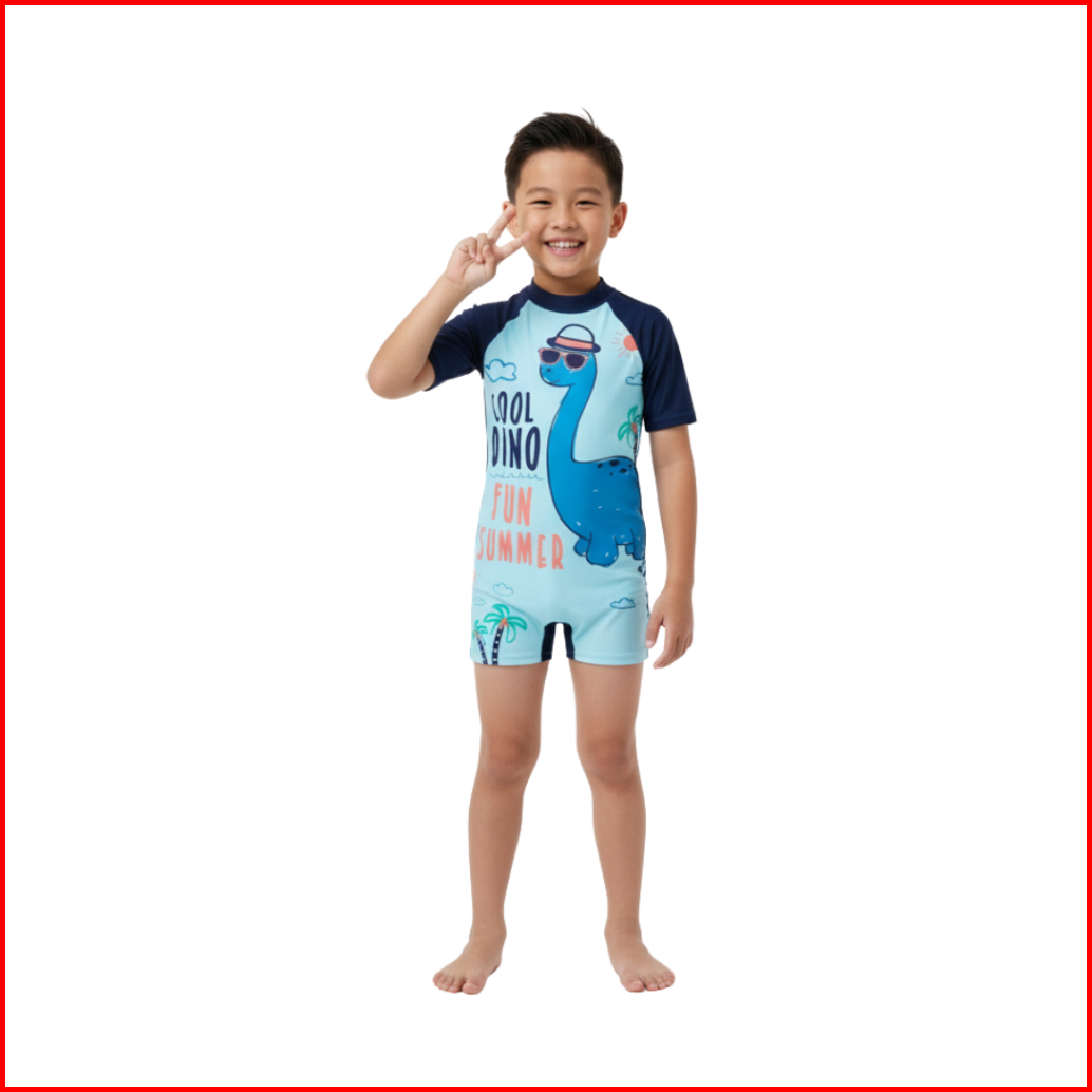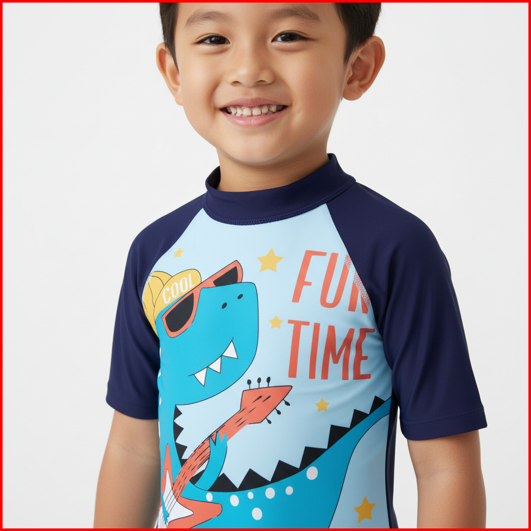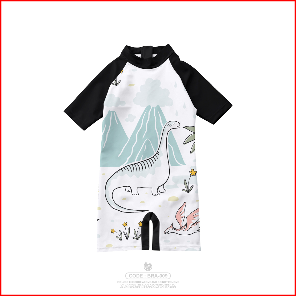 Baju Renang Anak Laki-laki Dan Perempuan Motif Dinosaurus Lengan Pendek - Bra X Furfix