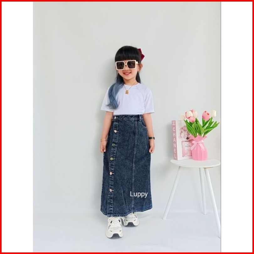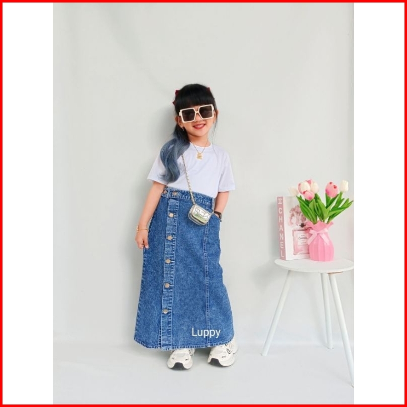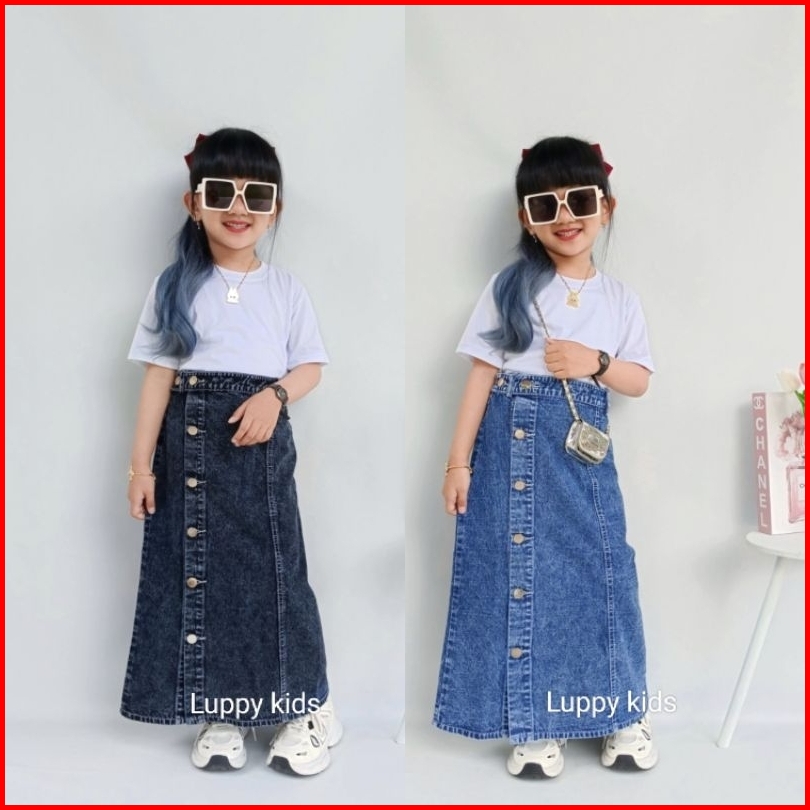 Rok Jeans Span Panjang Laura Style Korea Anak Perempuan 2-9 Tahun Terbaru Kekinian