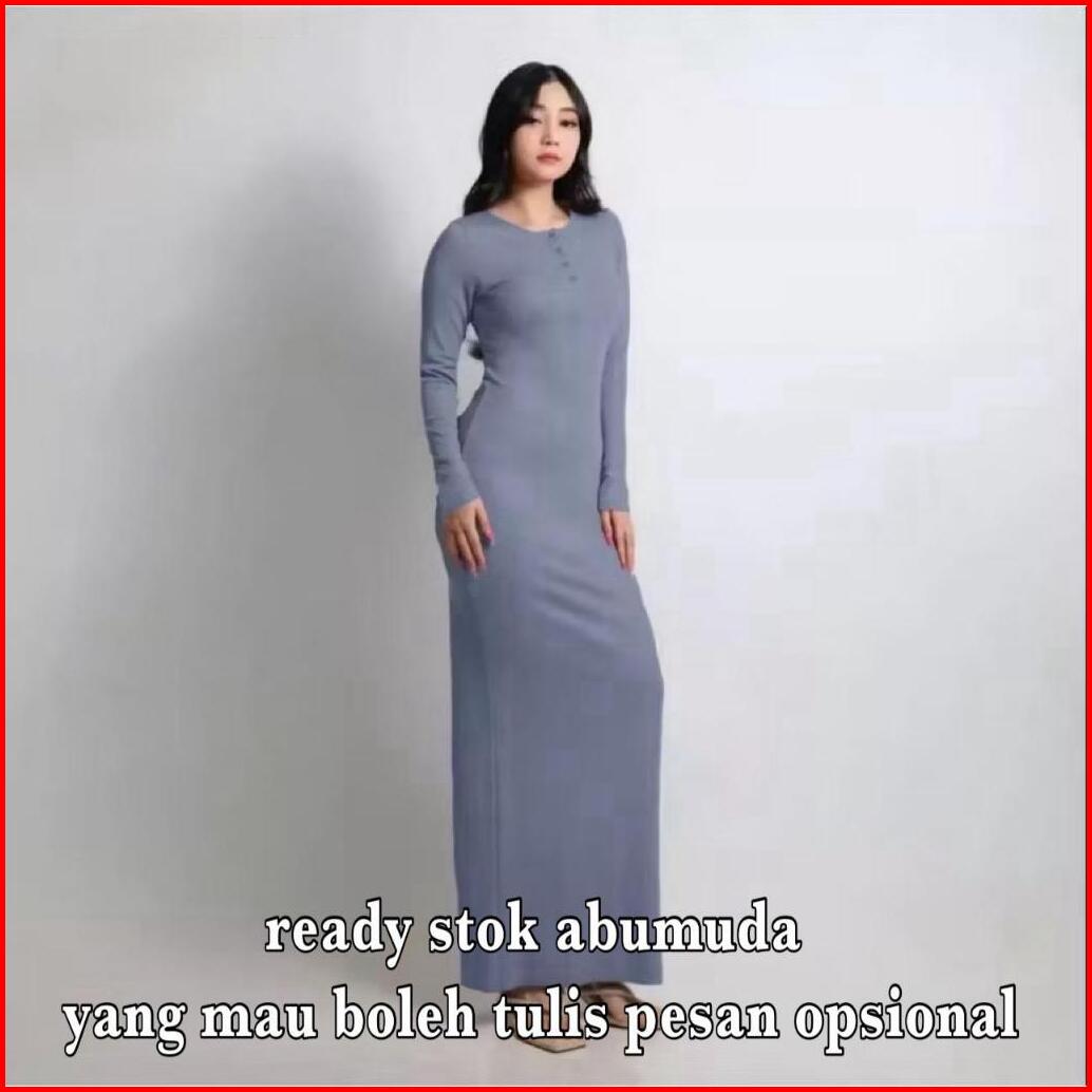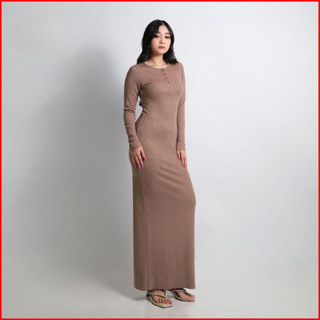 Busana Fashion Arisha Long Dres Casual Wanita Dres Wanita Kancing Lengan Panjang Rib Knit Terbaru Dres Terlaris 2025 Tre