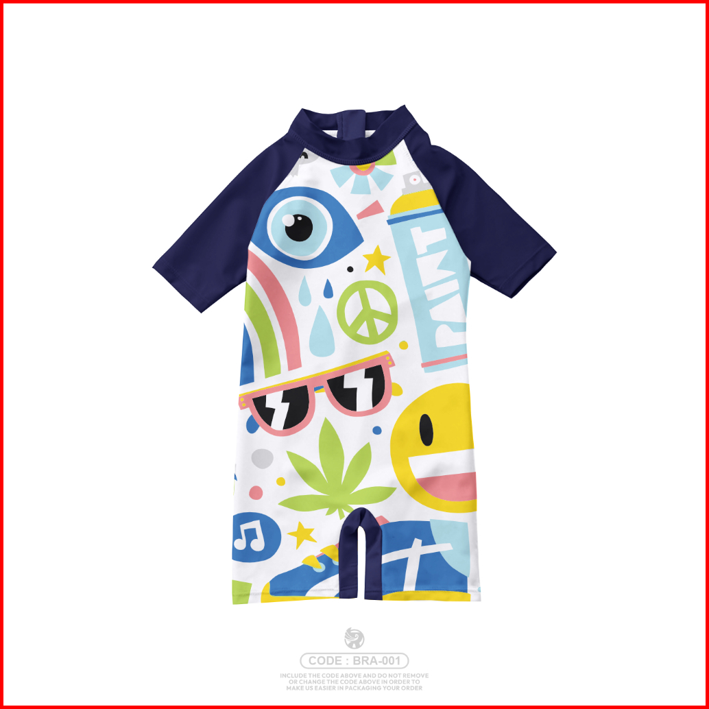 Baju Renang Anak Laki Laki Dan Perempuan Lengan Pendek Series Warna Navy - Bra X Furfix