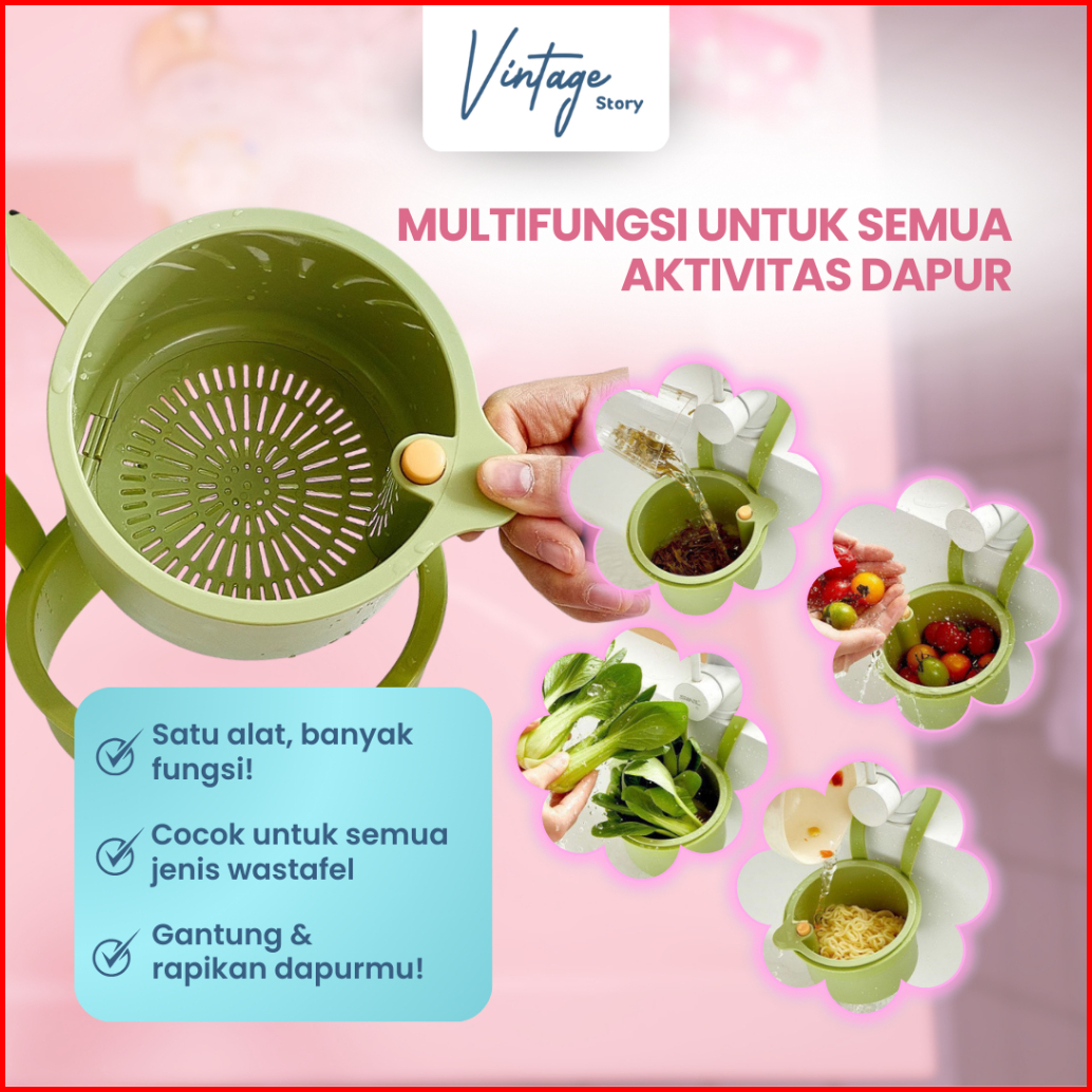 Saringan Wastafel Dapur Serbaguna Sisa Makanan Anti Sumbat 2 Lapis Gantung Keranjang