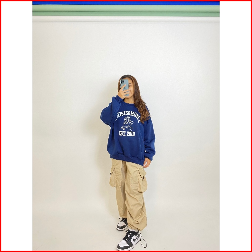 Sweater Crewneck Wanita Oversize Premium Warna Navy