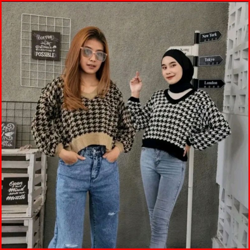 Sweater Jennie Crop Top Korean Style Atasan Wanita Rajut Viral