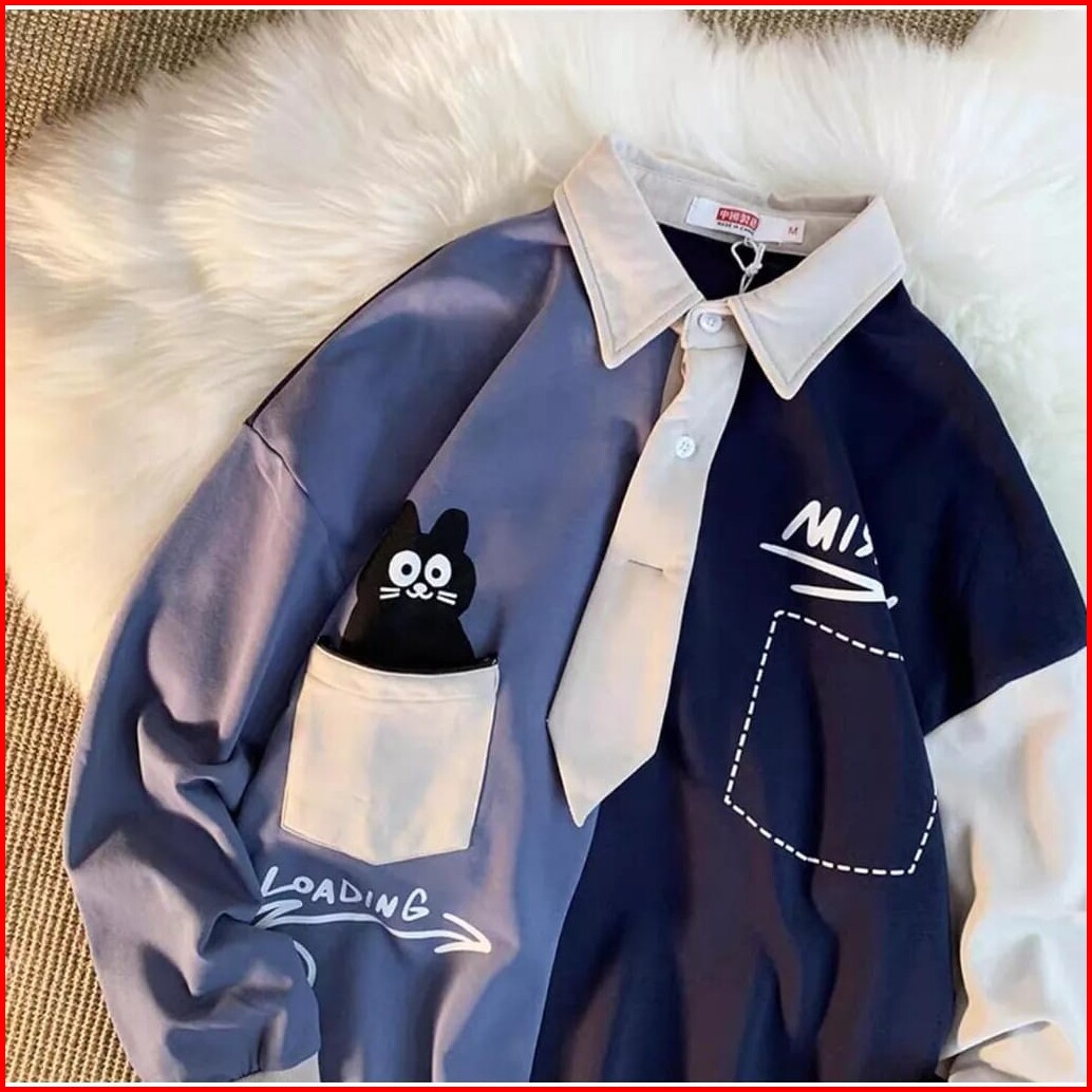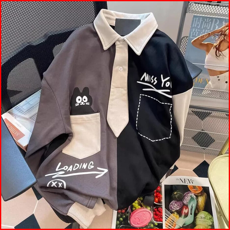 Miss You Loading Collar Oversized Sweater Outerwear Remaja Wanita Korean Style Premium