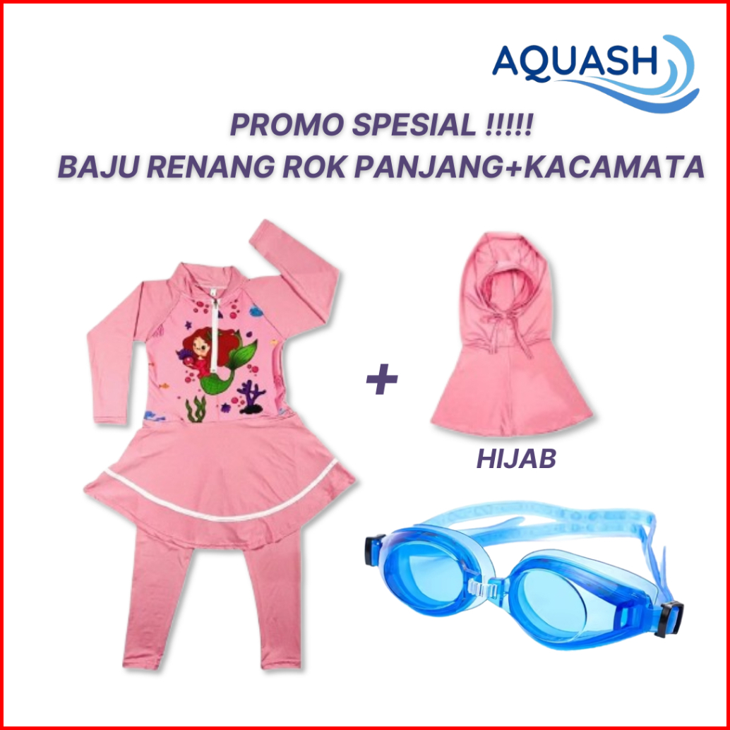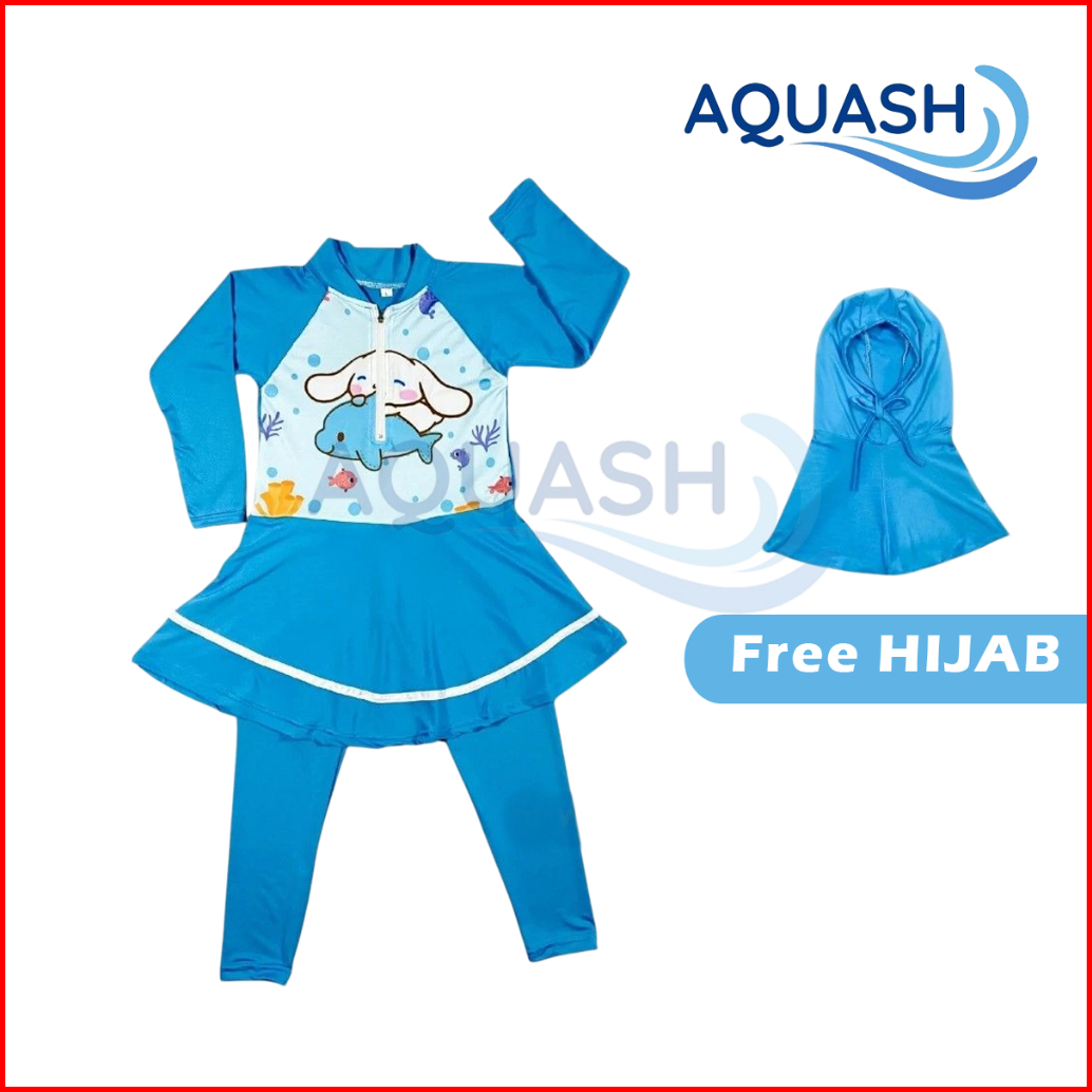 Baju Renang Anak Perempuan Rok Free Hijab Usia 3 4 5 6 7 8 Inner Celana Panjang Bahan Katun Spandek Karakter