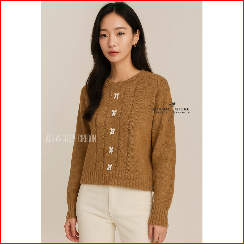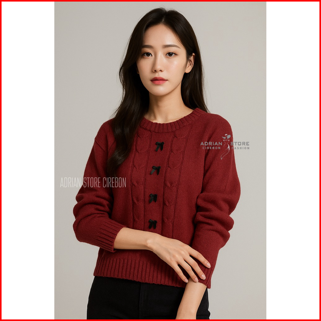 Slavina Sweater Cable Rajut Pita Korean Style Tebal Premium Jumbo Terbaru