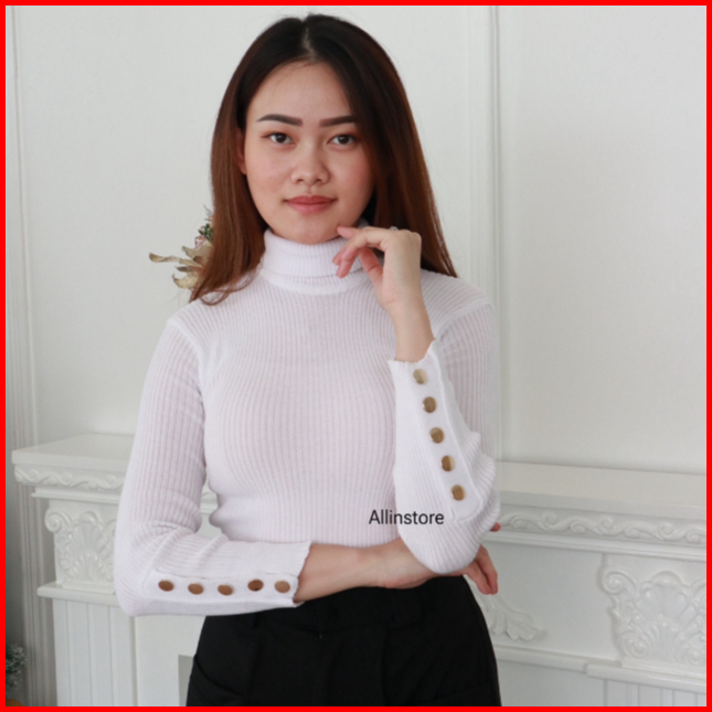 Ais Turtleneck Inara - Knit Baju Rajut Kancing Wanita - Atasan Inner Manset Rajut Lengan Panjang