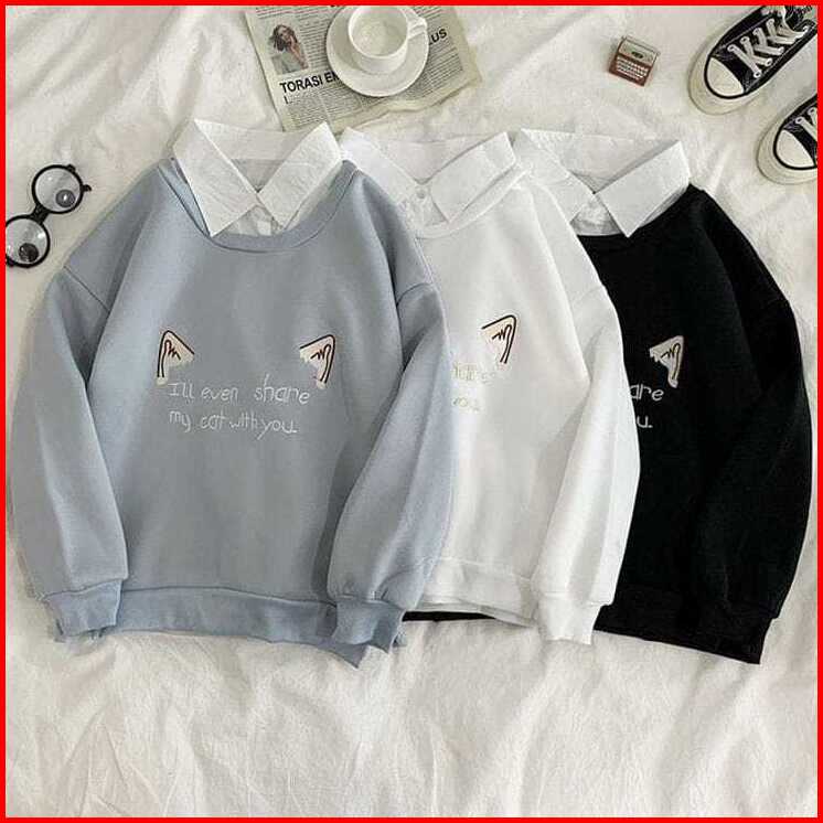 Sweater Cat Basic Perempuan Ll Crewneck Cat Basic Jumper