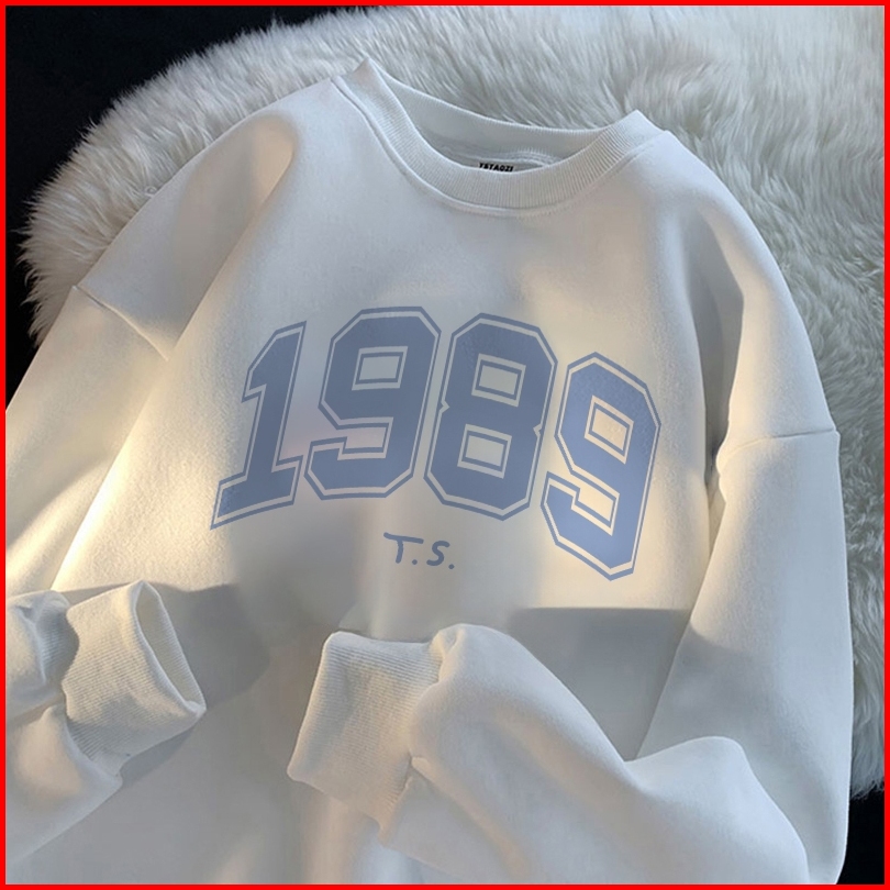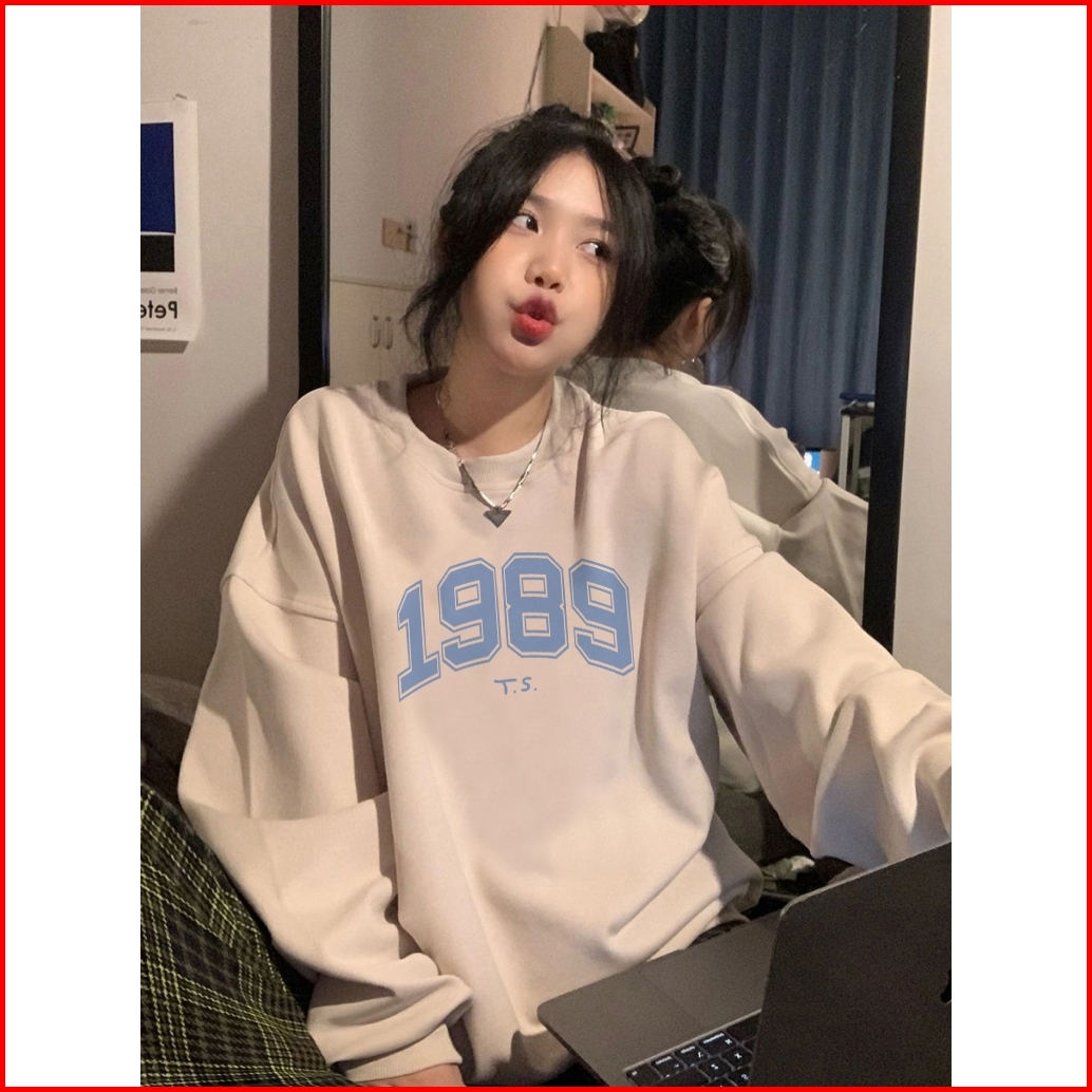 Po Floret Sweater Oversize Baju Lengan Panjang Sweatshirts 1989 Classic Digital Katun Murni Wanita Top Switer Wanita Kor