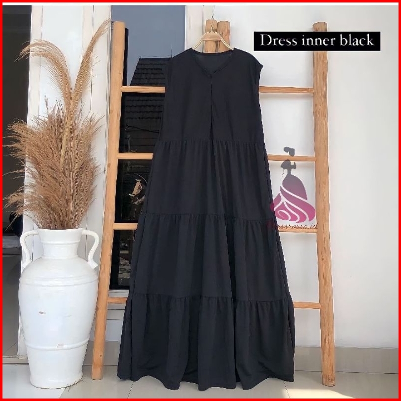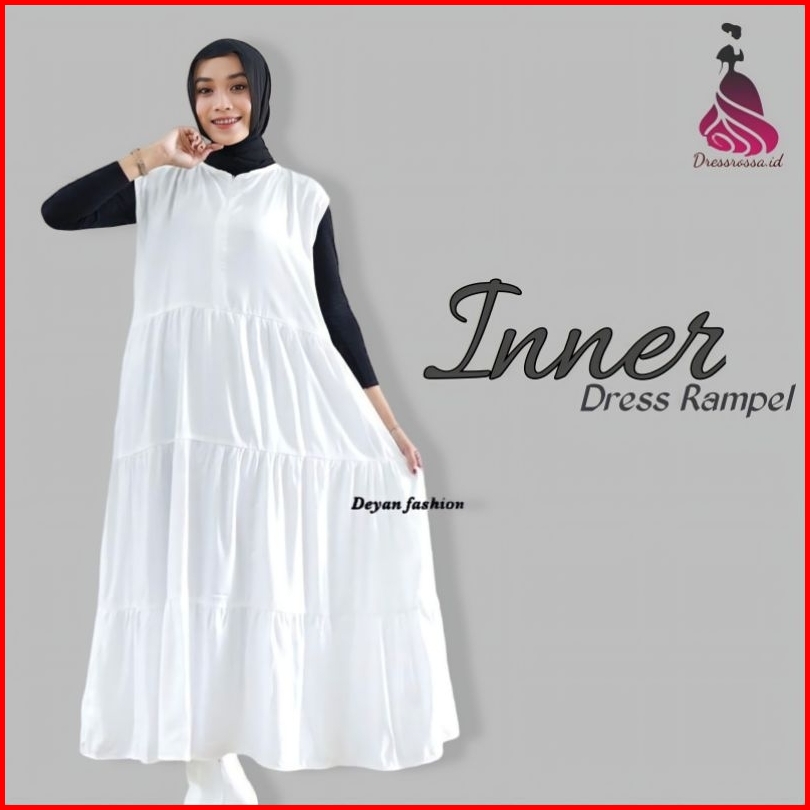 Inner Dress Tanpa Lengan Rok Susun Resleting Depan Busui Friendly Panjang Maxi Muat Bb 85