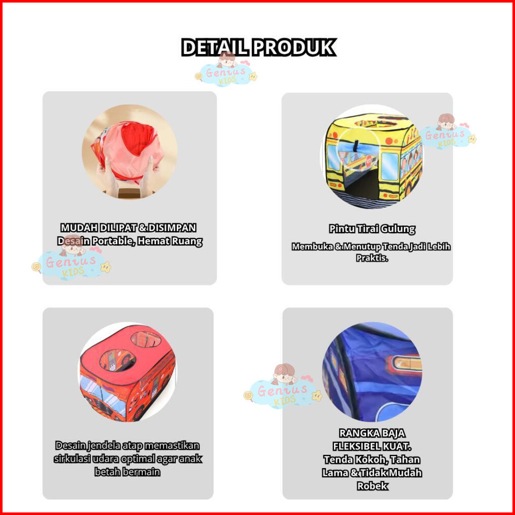 Genius Kids Tenda Anak Model Bus Tenda Lipat Anak Mainan Trip Lipat Portable Indoor Outdoor
