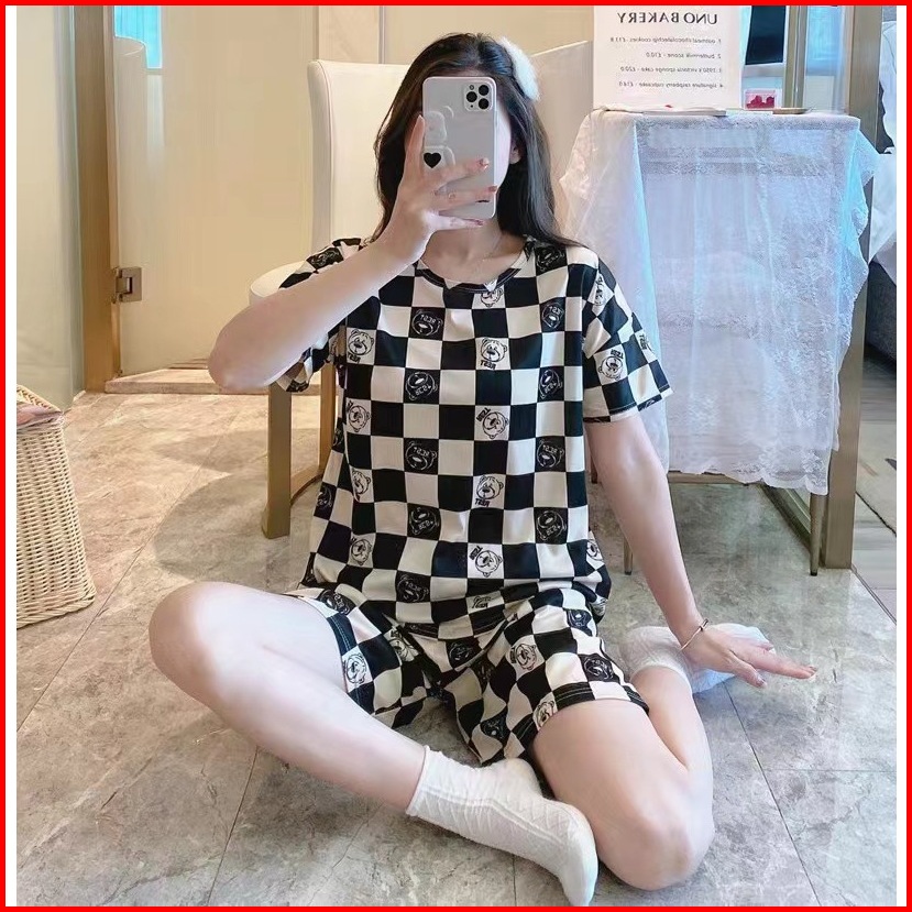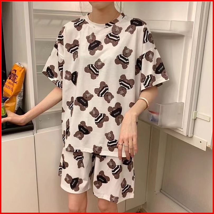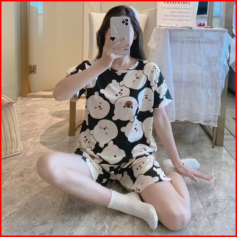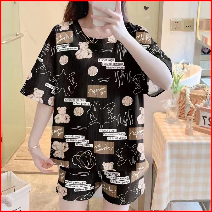 Set Piyama Setelan Baju Tidur Wanita Oversize Bahan Kaos Lengan Pendek Dewasa Motif Karakter Kartun - Piyama Wanita Moti