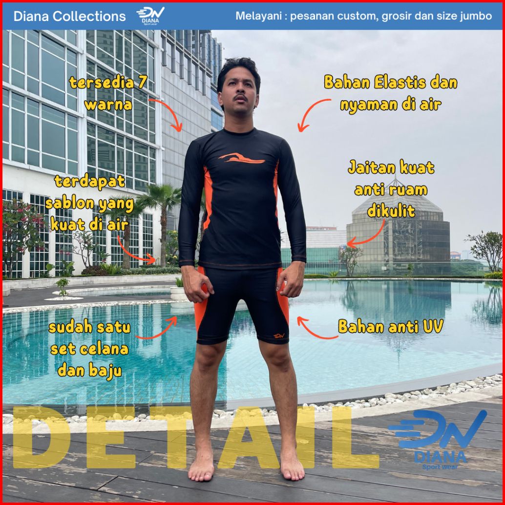 Celana Renang Pria Dan Baju Renang Dewasa Lengan Panjang Jumbo Setelan Pakaian Renang Pria Swimwear Pria Set Renang Pria