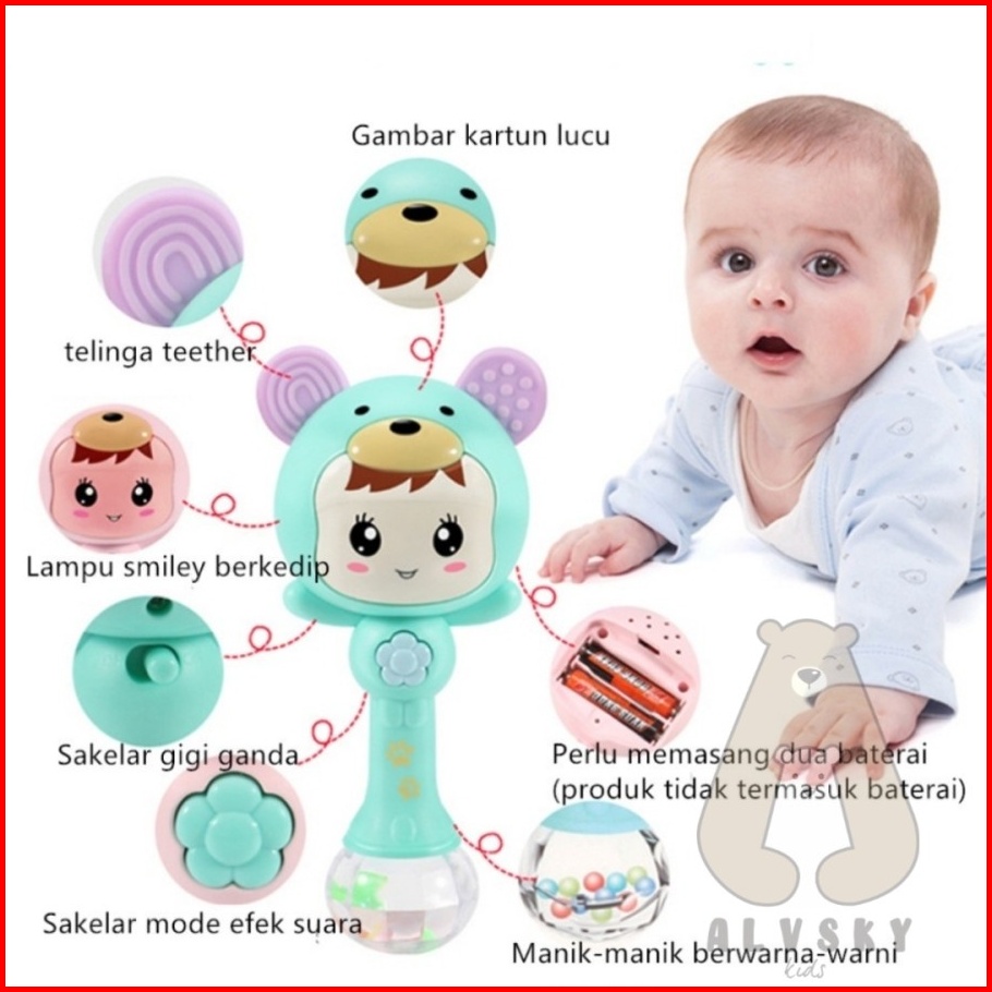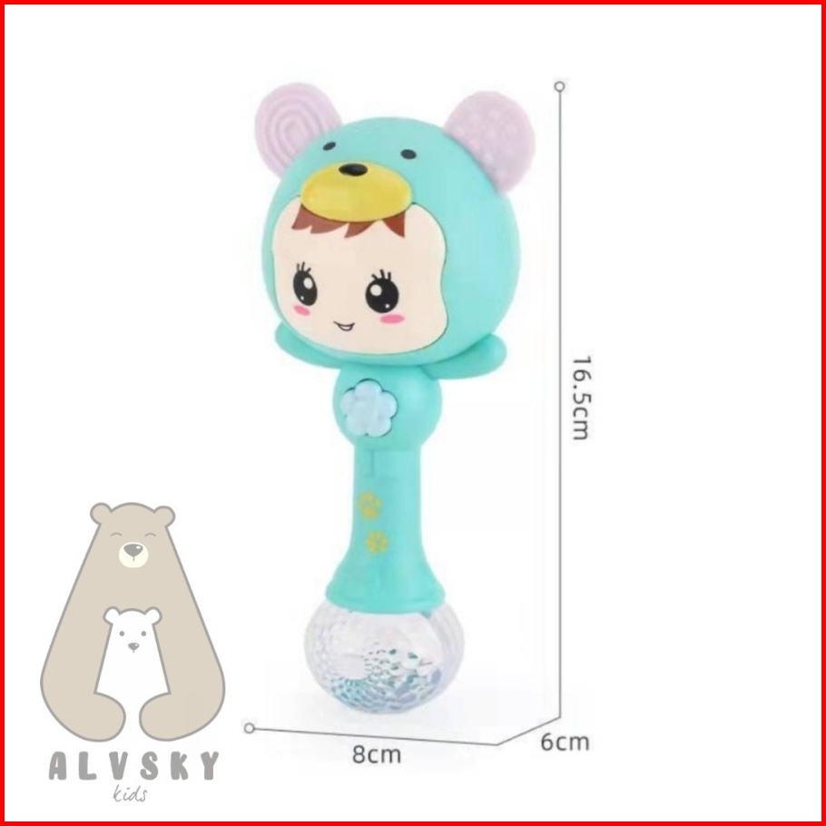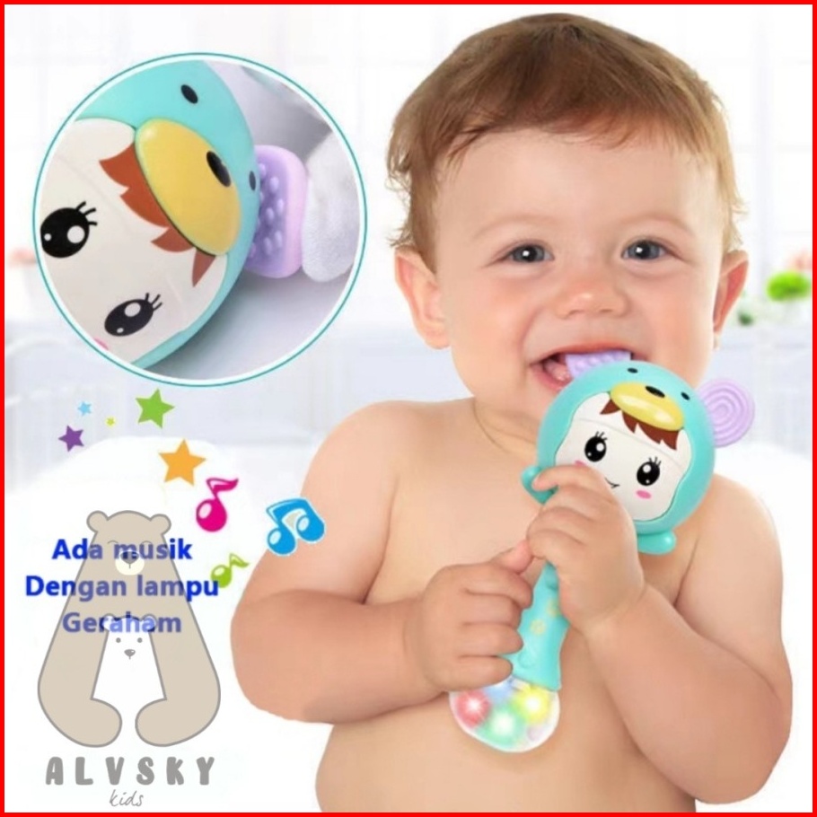 Mainan Anak Bayi Musik Dan Lampu Rattle Bayi Stick Dengan Teether