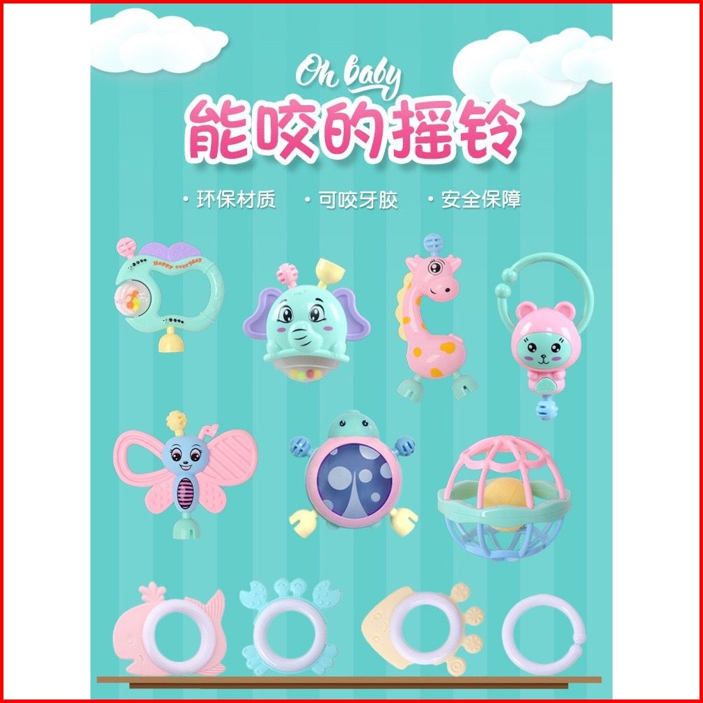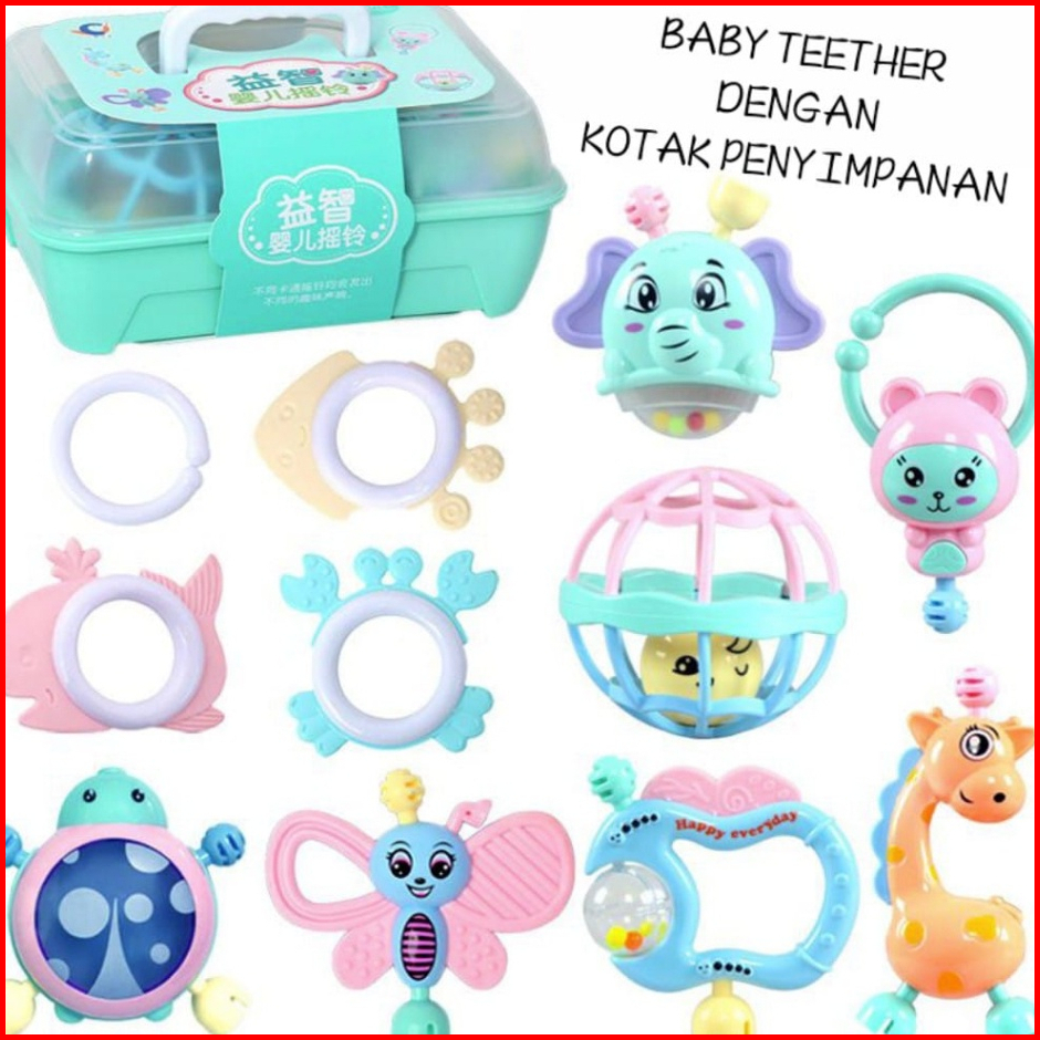 Mkr Babyset 11pcs Mainan Shake Teether Kids Toys Perkembangan Anak Balita Rattle Gigitan Baby Gigitan Bayi Set 11in1 Mur
