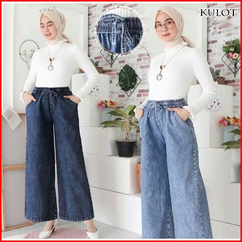 Celana Kulot Jeans Rawis Lipat Model Kekinian Gratis Ongkir