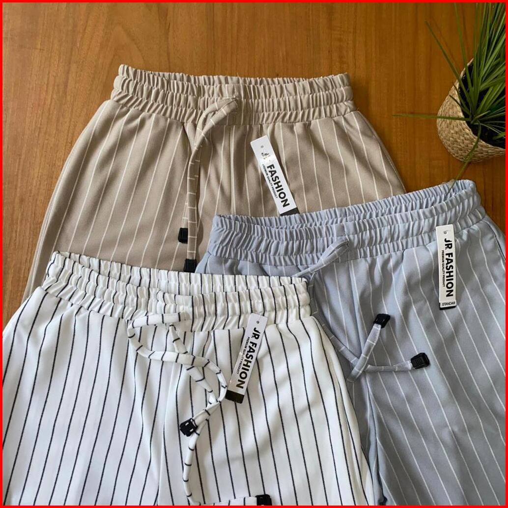 Jr - Everyday Pants - Strips Pants Bangkok - Celana Panjang Wanita Baggy Kantor Kuliah Motif Garis Kulot Pinstripe - Cel