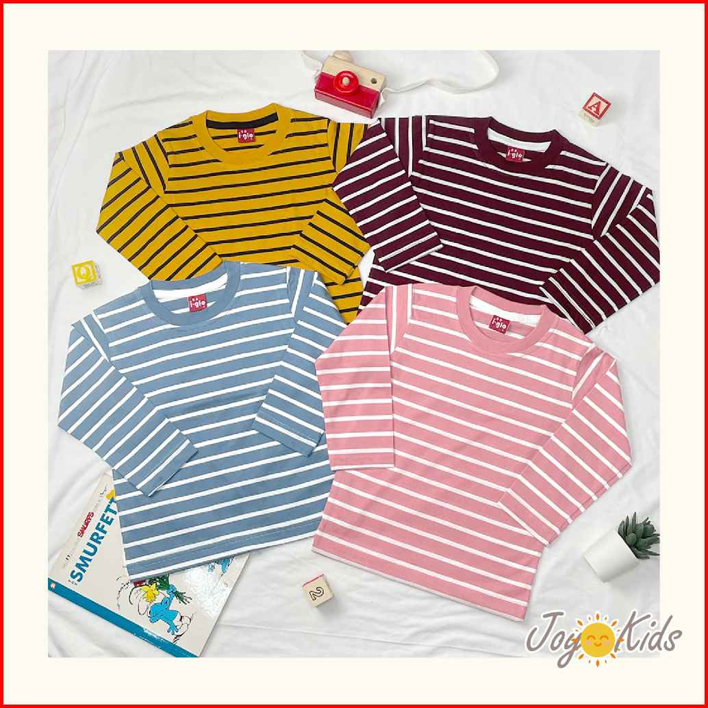 Kaos Stripe Salur Garis Anak Laki-laki Perempuan Lengan Panjang 1-12 Tahun Katun Premium Joy Kidss
