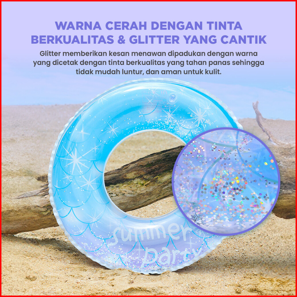 Pelampung Ban Renang Anak Dan Dewasa Motif Sirip Ikan Glitter Bahan Pvc Premium - Gofunshop