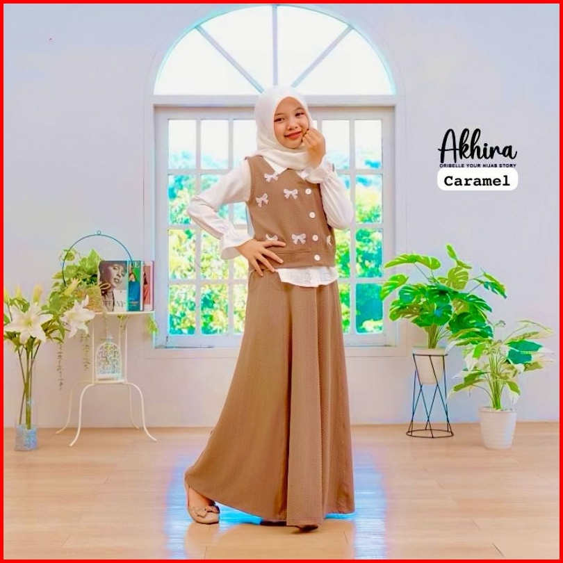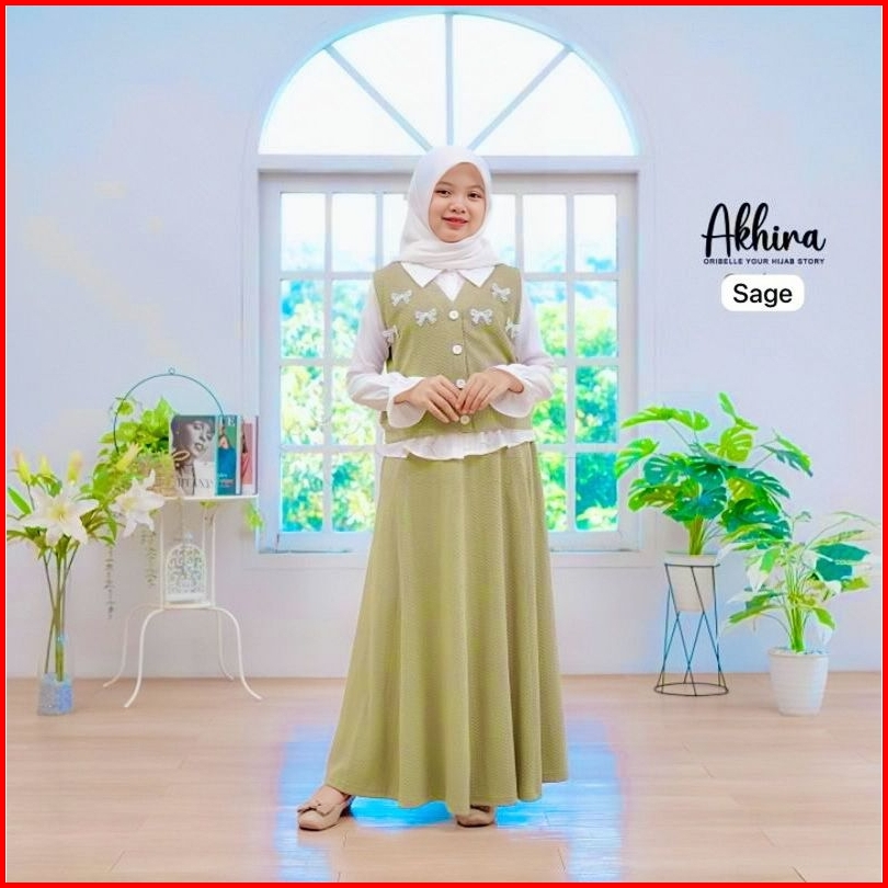 Akhira 3in1 Oneset Usia 9-16 Tahun Setelan Rok Remaja Tanggung Setelan Anak Perempuan Terbaru