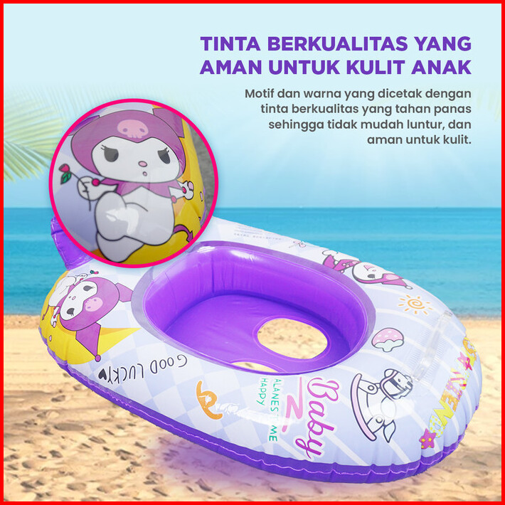 Pelampung Ban Renang Duduk Anak Motif Sanrio Kuromi Swim Trainer Ring Safety Baby Boat Gofunshop