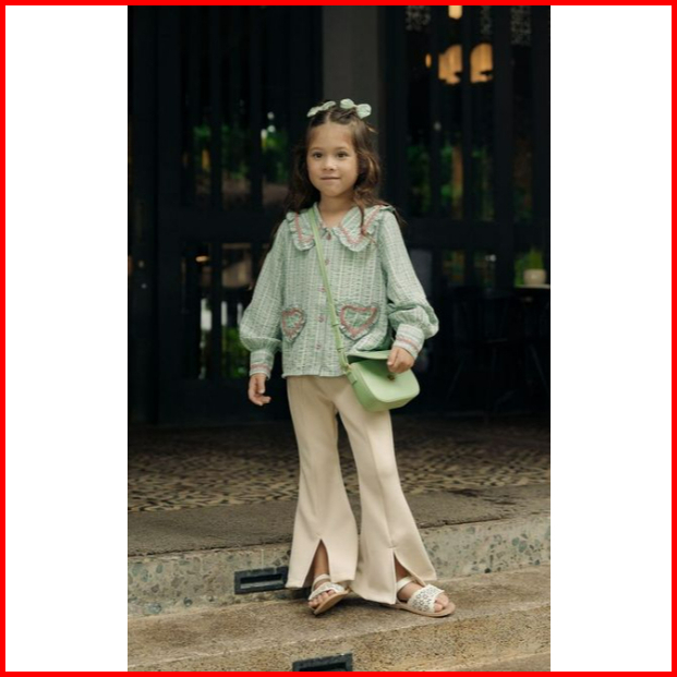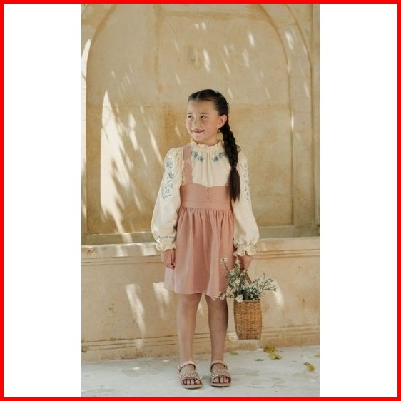 Bohopanna 1-14 Tahun Annabelle Long Top Sleeve Atasan Lengan Panjang Bordir - Blouse Kerah Kotak Kotak Ruffle Pocket Hea