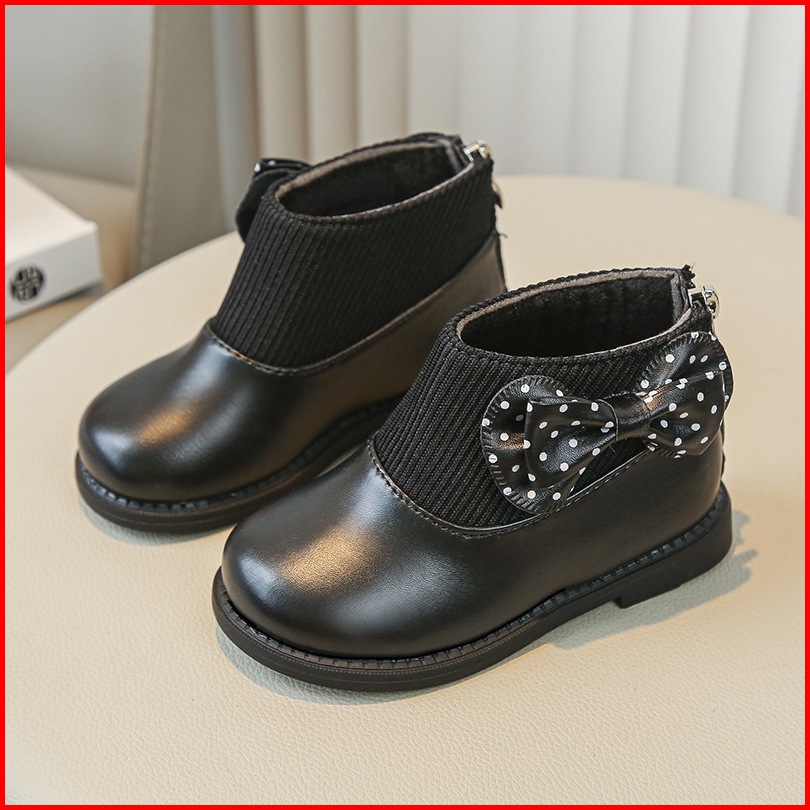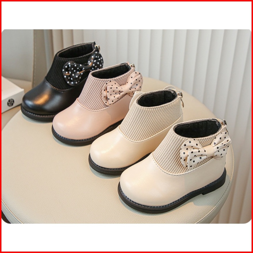 317 New Sepatu Boot Anak Perempuan Motif Pita Polkadot