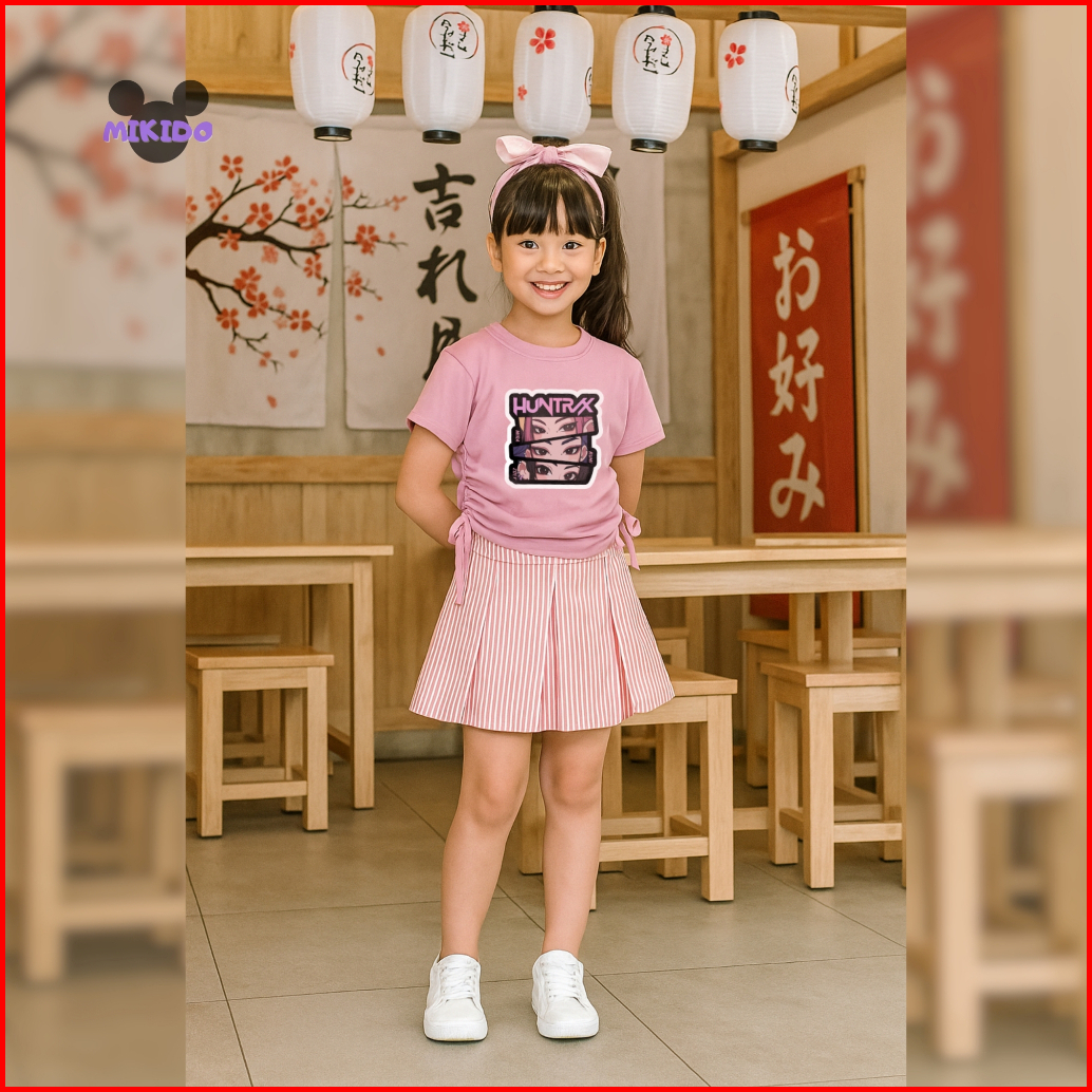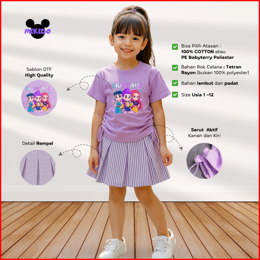 Setelan Kaos Serut Crop Top Dan Rok Celana Rempel Salur Perempuan Huntrix Umur 1-14 Tahun Part 2