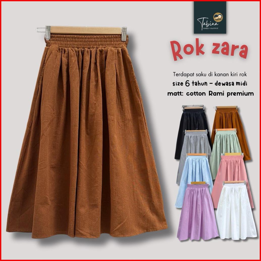Tabina Rok Anak Perempuan Hingga Dewasa Midi Seri Zaraa Bahan Katun Rami Usia 5 Tahun Hingga Dewasa