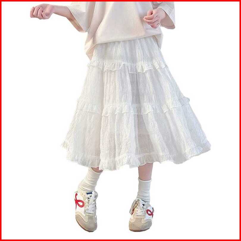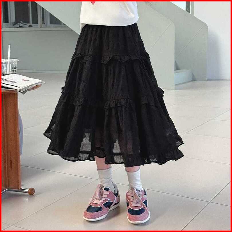 Rok Anak Perempuan Aksen Susun 3 Bahan Polo Linen Untuk Usia 3-12th Skirt Kids Ruffle A-line Korean Style Rok Anak Korea