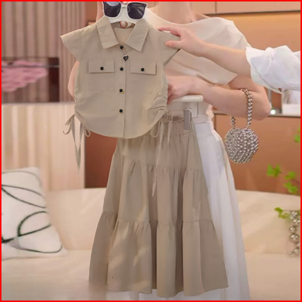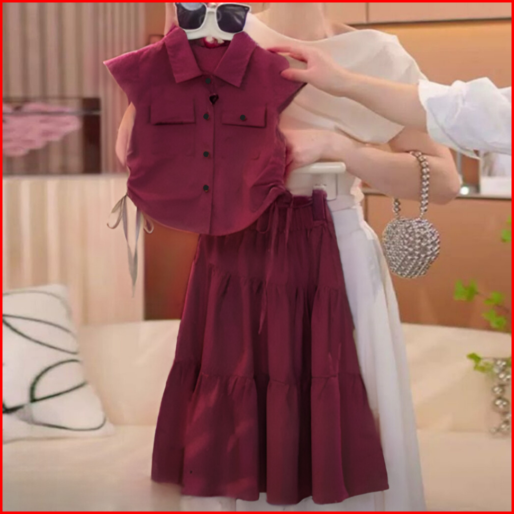Setelan Rok Anak Perempuan Untuk Usia 4-10 Tahun Bahan Cringkel