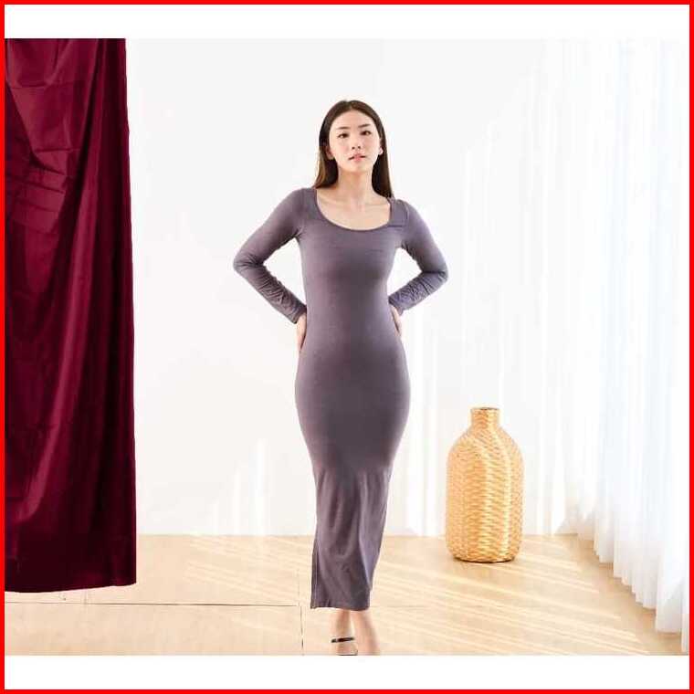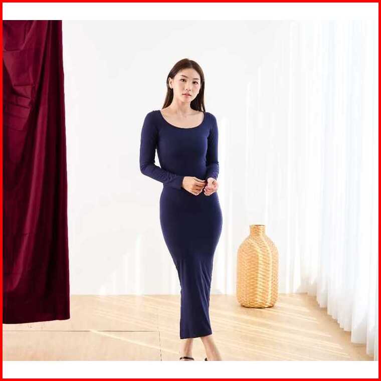 Sexy Maxi Dress Bodycon Korean Style Long Slevee - Long Dress Lengan Panjang
