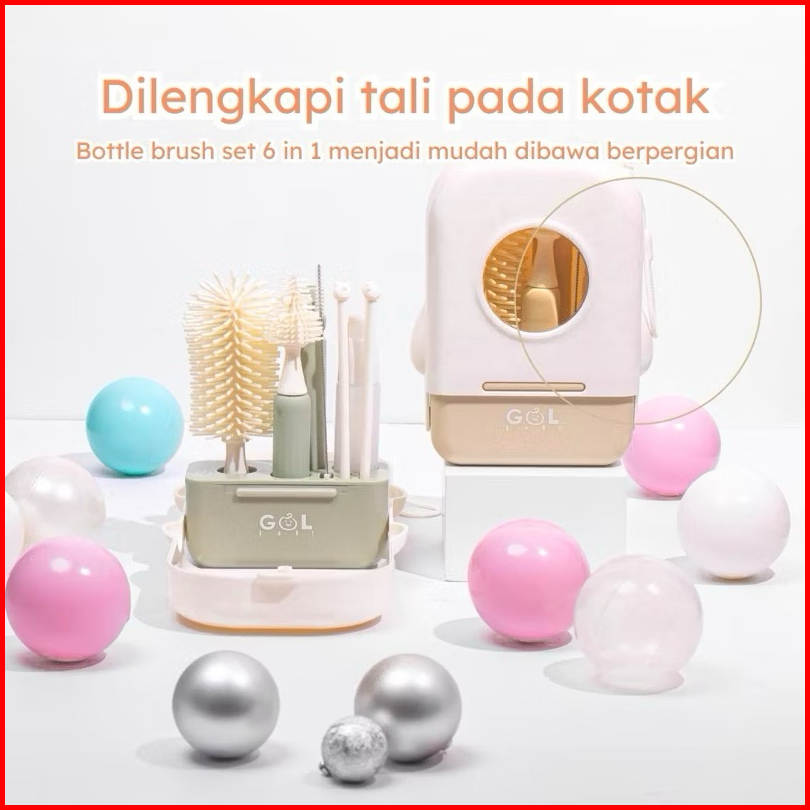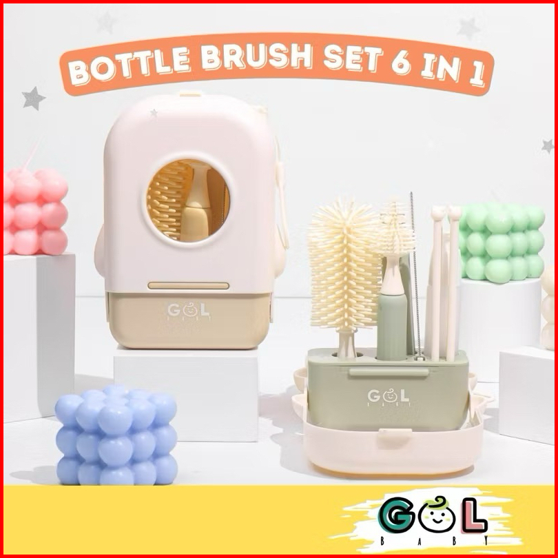 Gol Baby 6 In 1 Sikat Cuci Botol Susu Bayi Portable Travelling Bottle Brush Kit Set Sikat Pembersih Cuci Dot Sedotan Bot