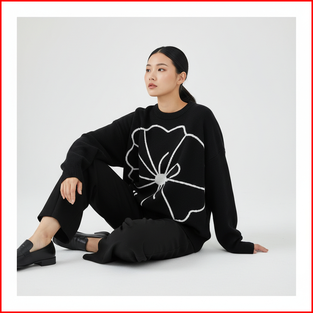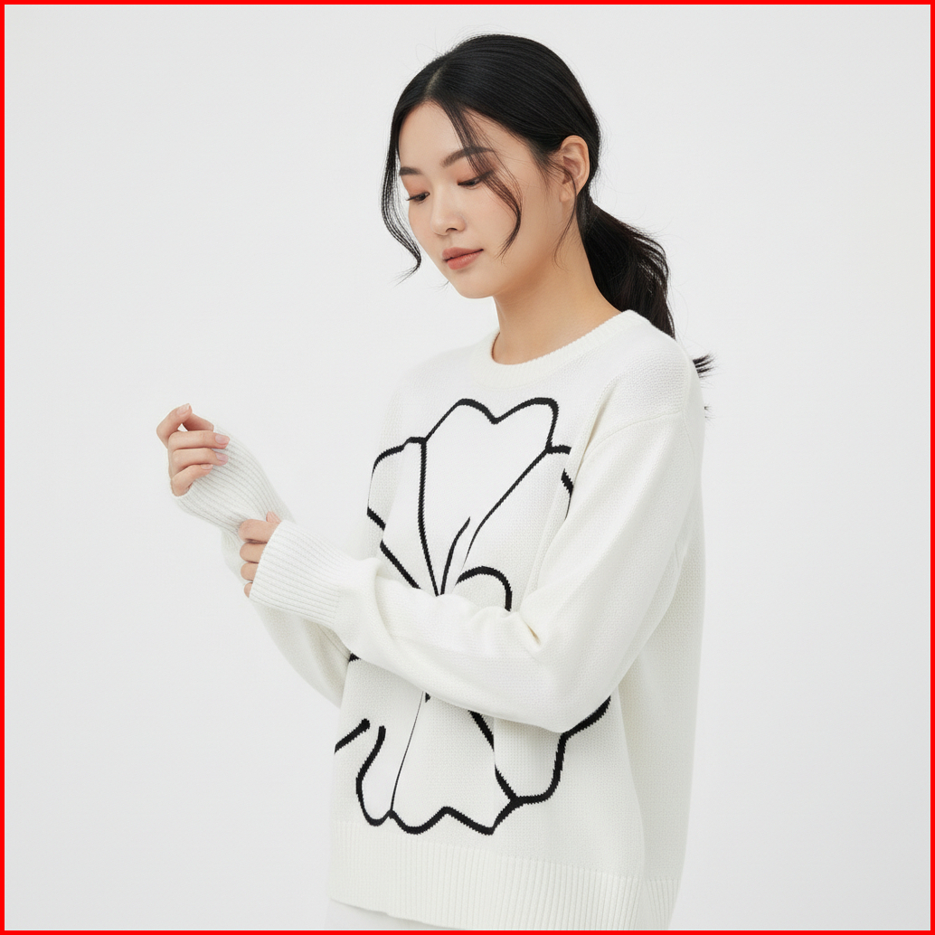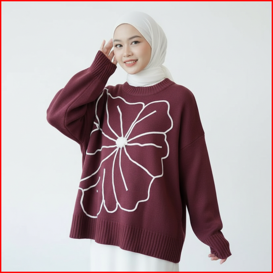 Mai.marketperra Sweater Floral Embroidery - Sweater Rajut Bungan Kamboja