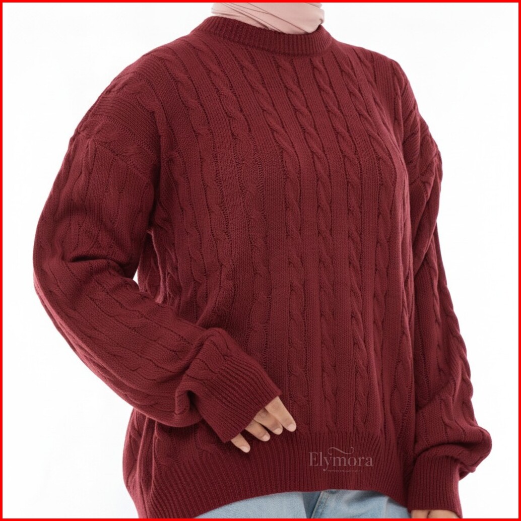 Elymora Sweater Rajut Cable Oversize Korean Style Sweater Rajut Wanita Knitwear Wanita Basic Lengan Panjang Premium