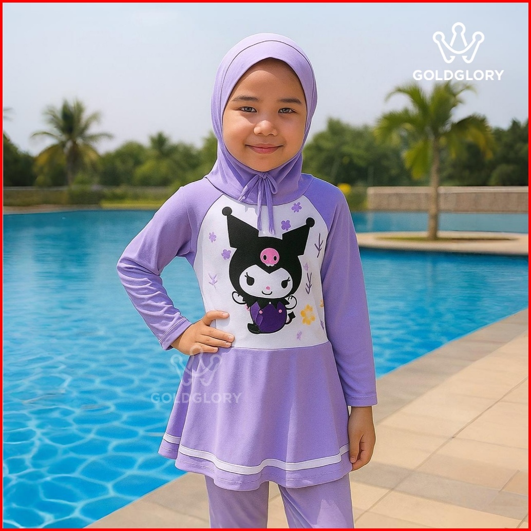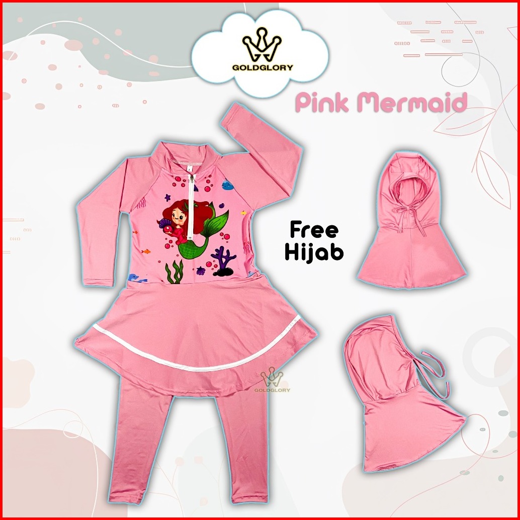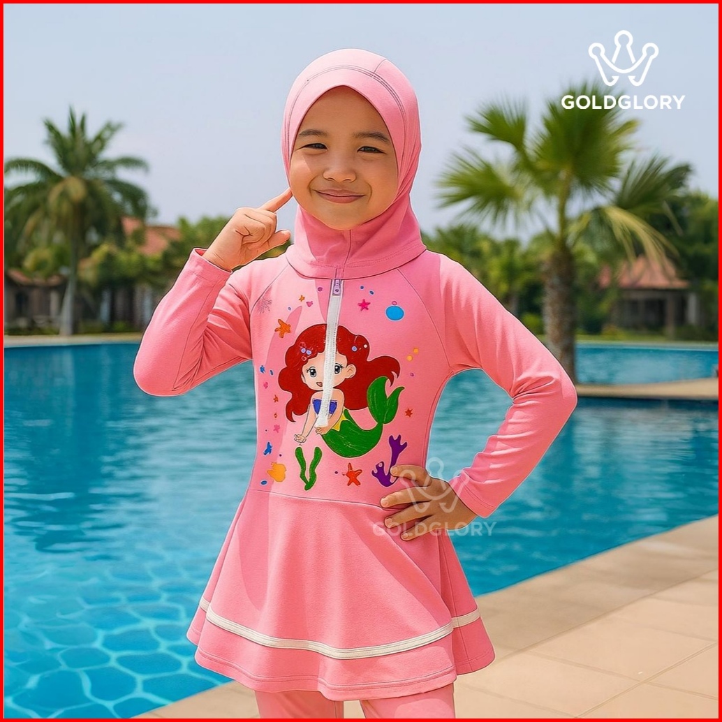 Baju Renang Anak Panjang Karakter Rok Inner Spandek Premium Free Hijab - Goldglory - Sport