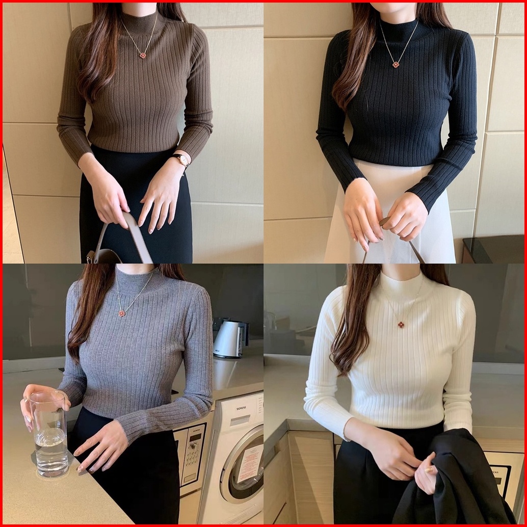 Onefashionmall Sl002 Manset Rajut Atasan Lengan Panjang Inner Hijab Baju Dalaman Turtleneck Knit