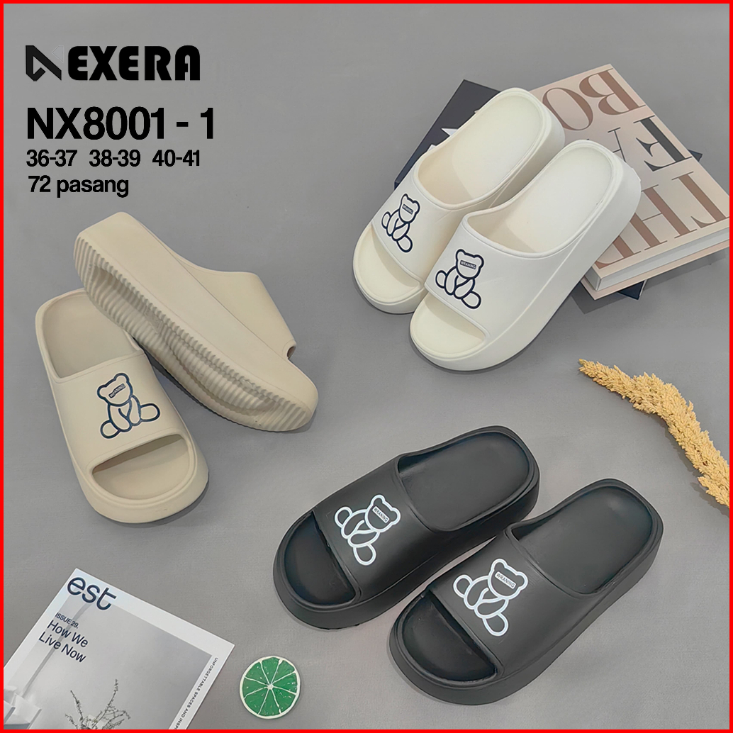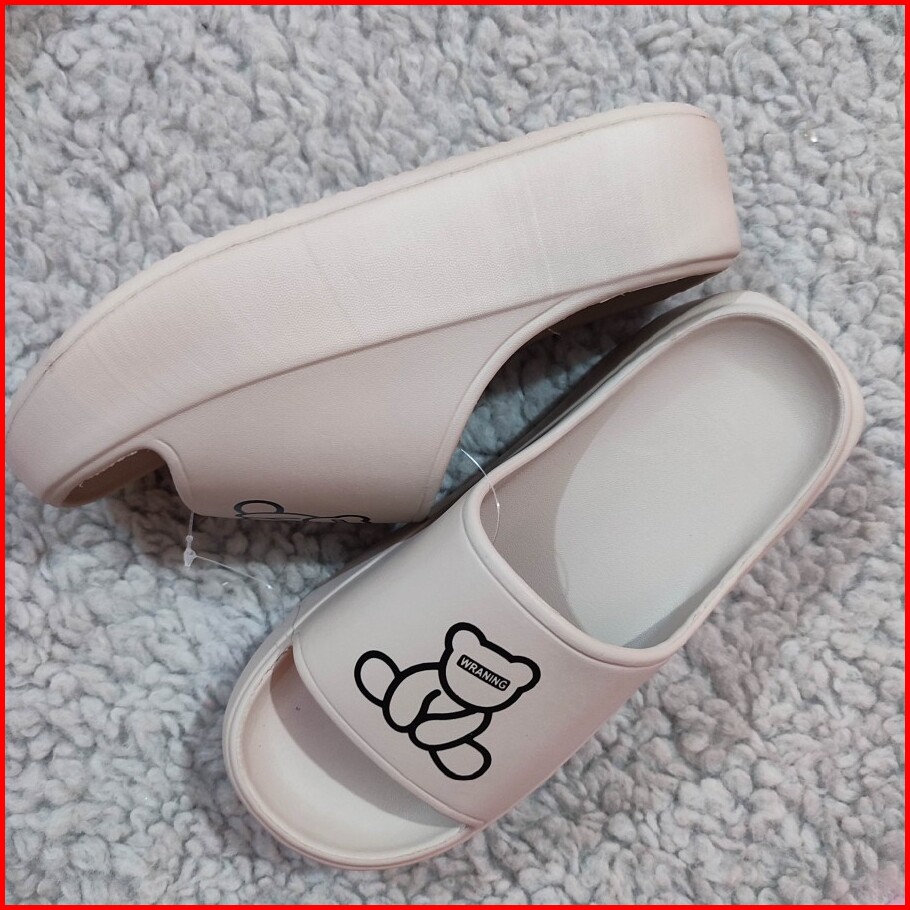 Nx8001-1 Sandal Teddy Bear Slop Wanita Fashion Size 36-41 Lucu Sendal Flat Lembut Bahan Karet Eva Anti Slip