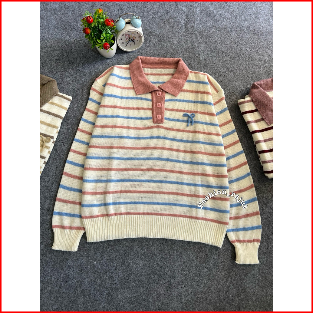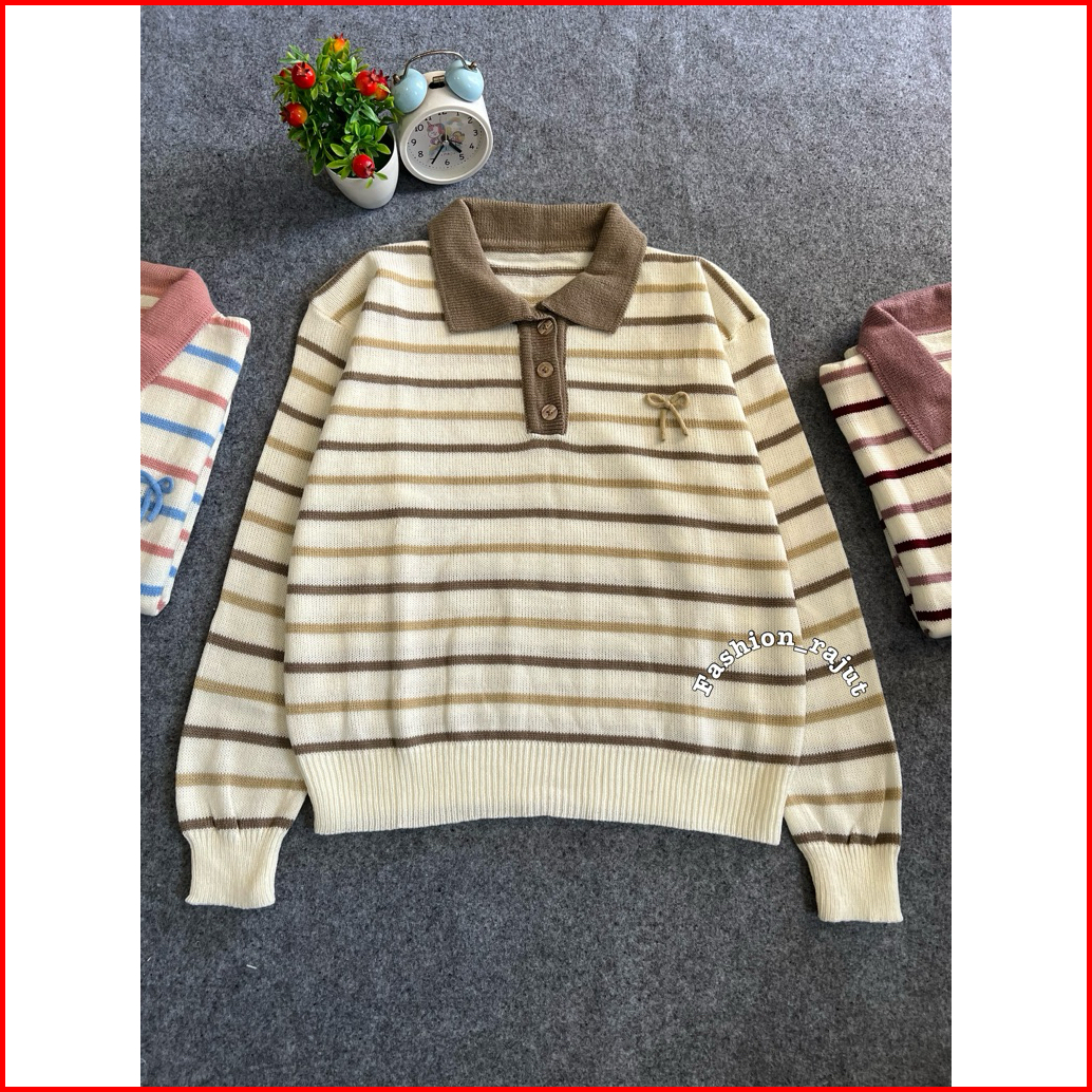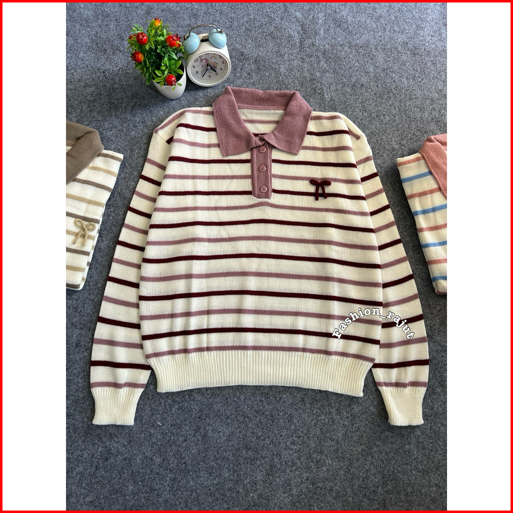 Hanasita Sweater Rajut Pita Garis-garis Lengan Panjang Korean Style