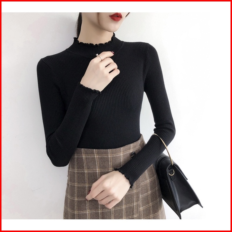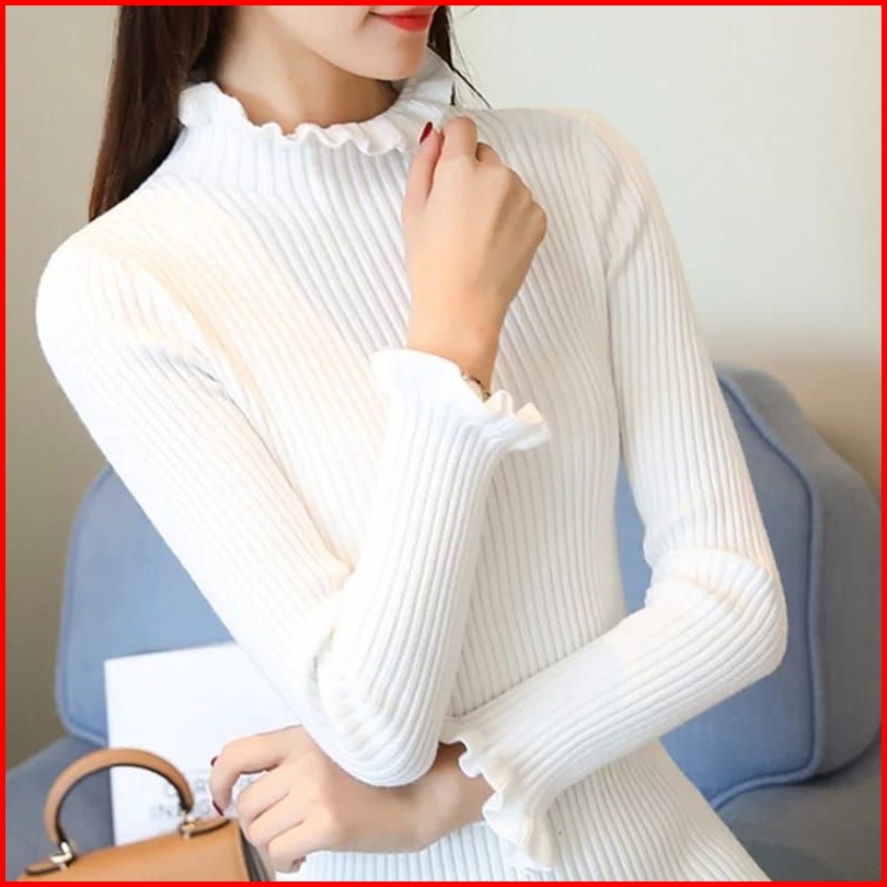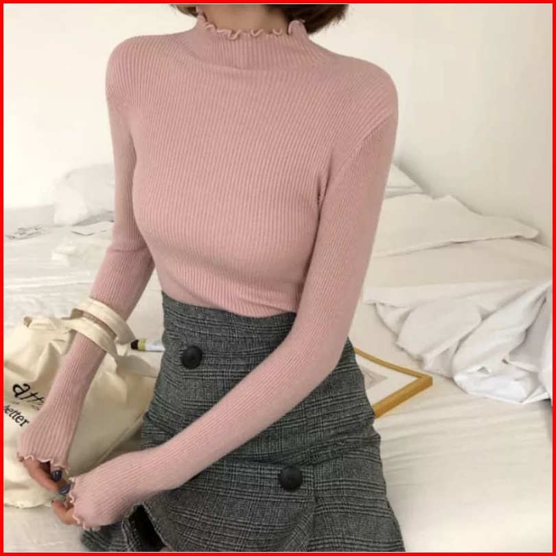 Daisy Curly Sweater Rajut Turtleneck Kriwil Knit Inner Rajut Sweater Rajut Turtelneck Salur Kriwil