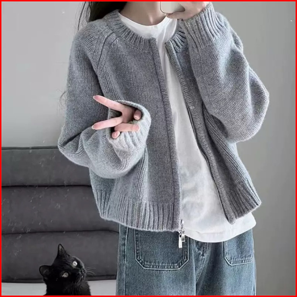 Cw Sweater Rajut Autumn Musim Dingin Wanita Tebal Zipper 1522