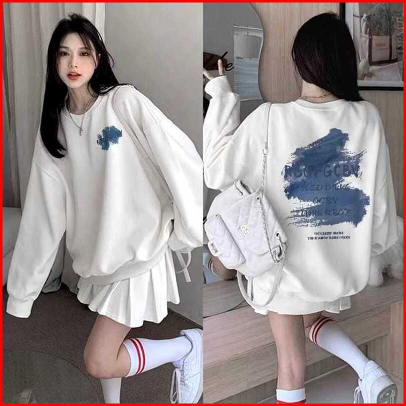Dinafshn - Fashion Ink Graffity Sweater Crew Neck Wanita Model Korean Style Oversize