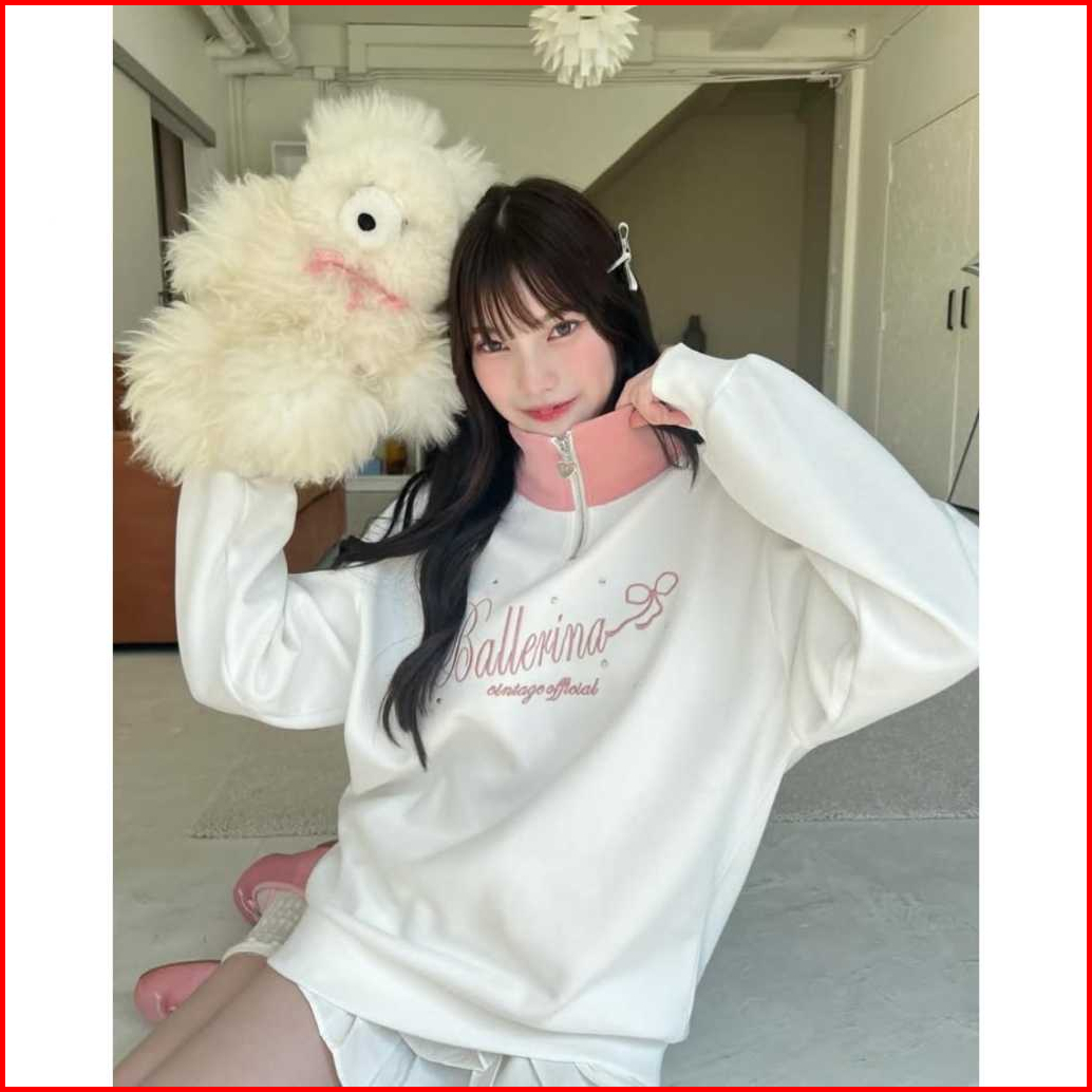 Ballerina Halfzip Sweater Wanita Oversize - Sweatshirt Pakaian Wanita Korean Style