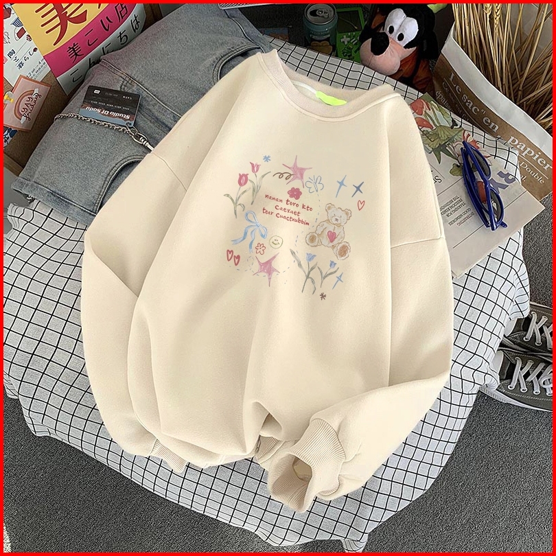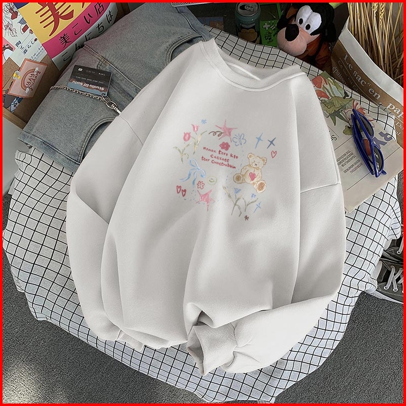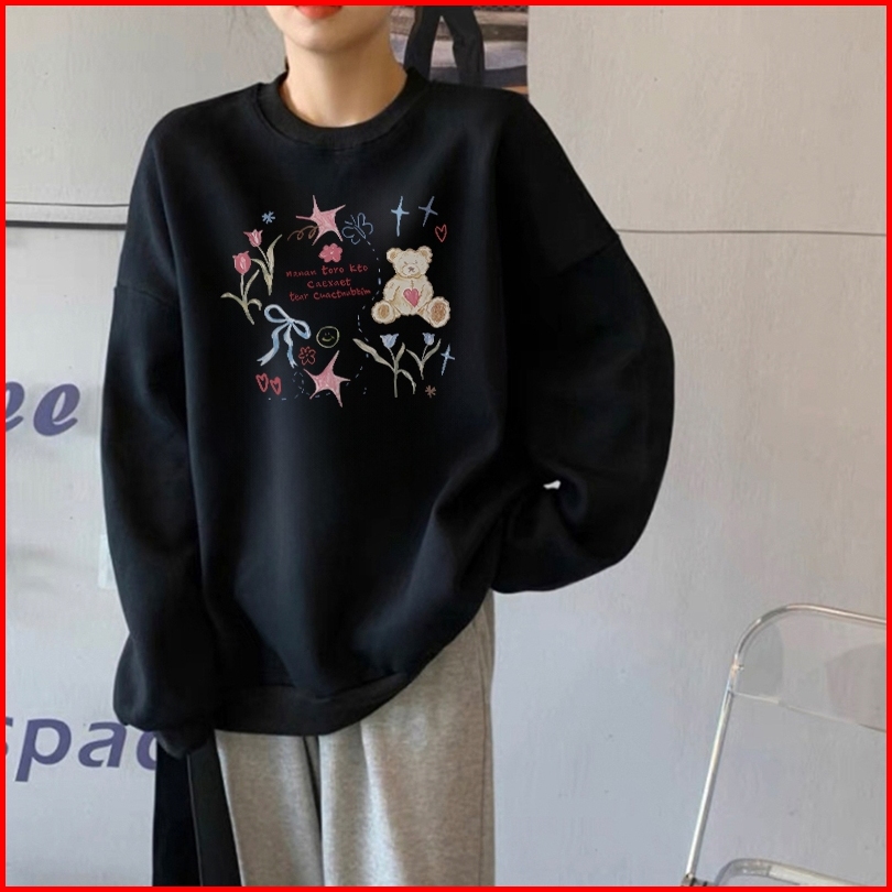 Forteid Sweater Lengan Panjang Oversized Street Style Korean Style Switer Wanita Oversize Kaos Pola Beruang Yang Dilukis