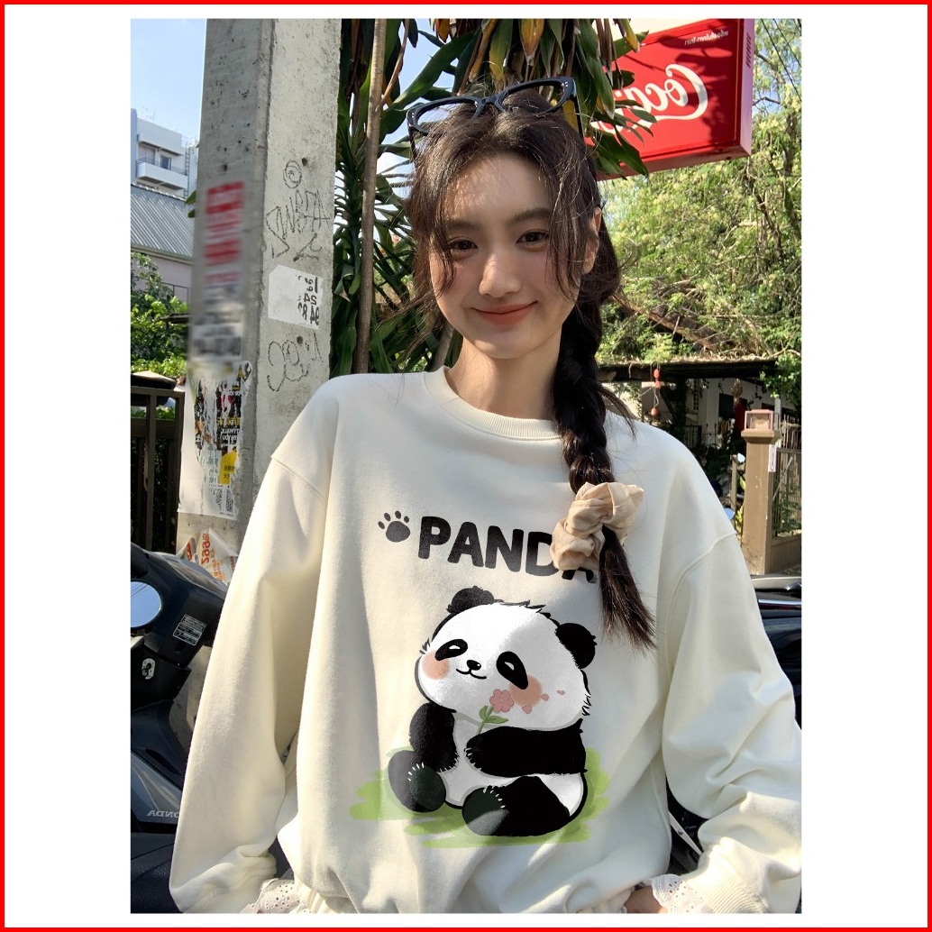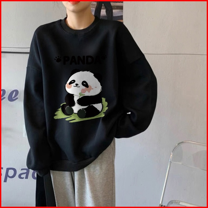 Forteid Sweater Lengan Panjang Oversized Street Style Korean Style Switer Wanita Oversize Kaos Panda Lucu Korean Style S