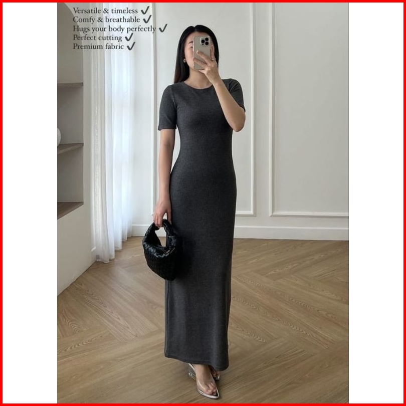 Inner Basic Knit Premium-inner Rajut Lengan Pendek-inner Dress-gaun Bodycon