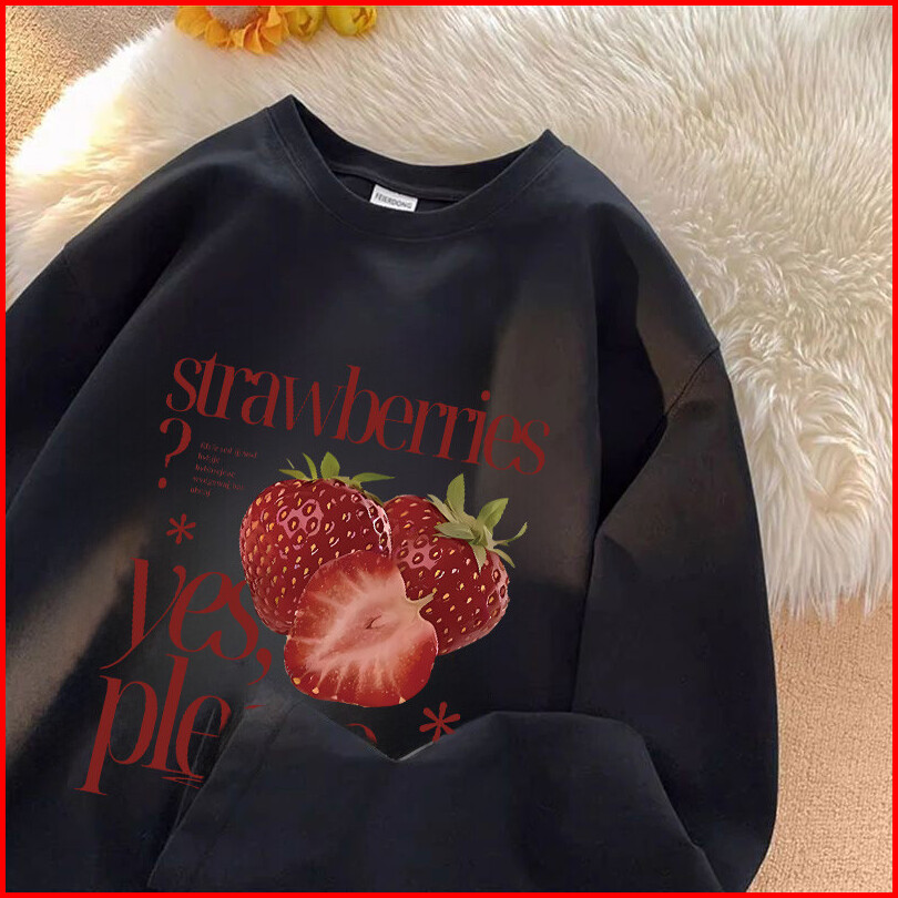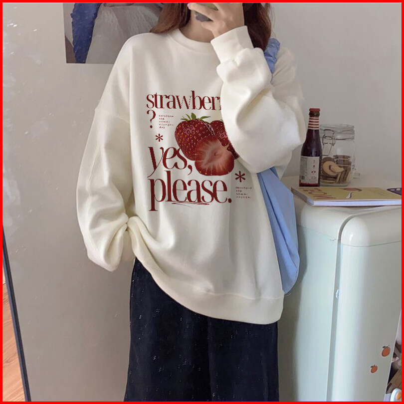 Po Floret Sweater Crewneck Oversize Wanita Delicious Strawberry Korean Print Korean Style Sweater Wanita Original 100 Co